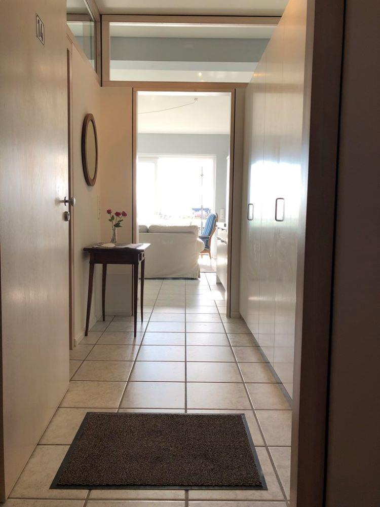 Vom Wohnbereich kommen Sie auf den Balkon, von dem Sie auf Schönhagen blicken können. Über den Flur erreichen Sie das Badezimmer, welches mit einer Badewanne ausgestattet ist, sowie mit einem Föhn und Kosmetikspiegel.