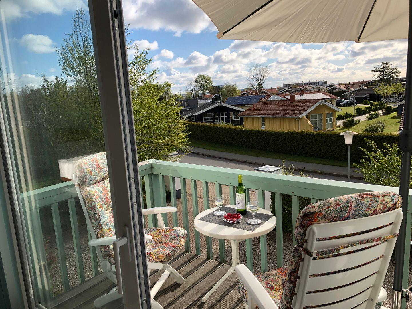 Moderne Ferienwohnung mit einem Balkon und Blick über Schönhagen.