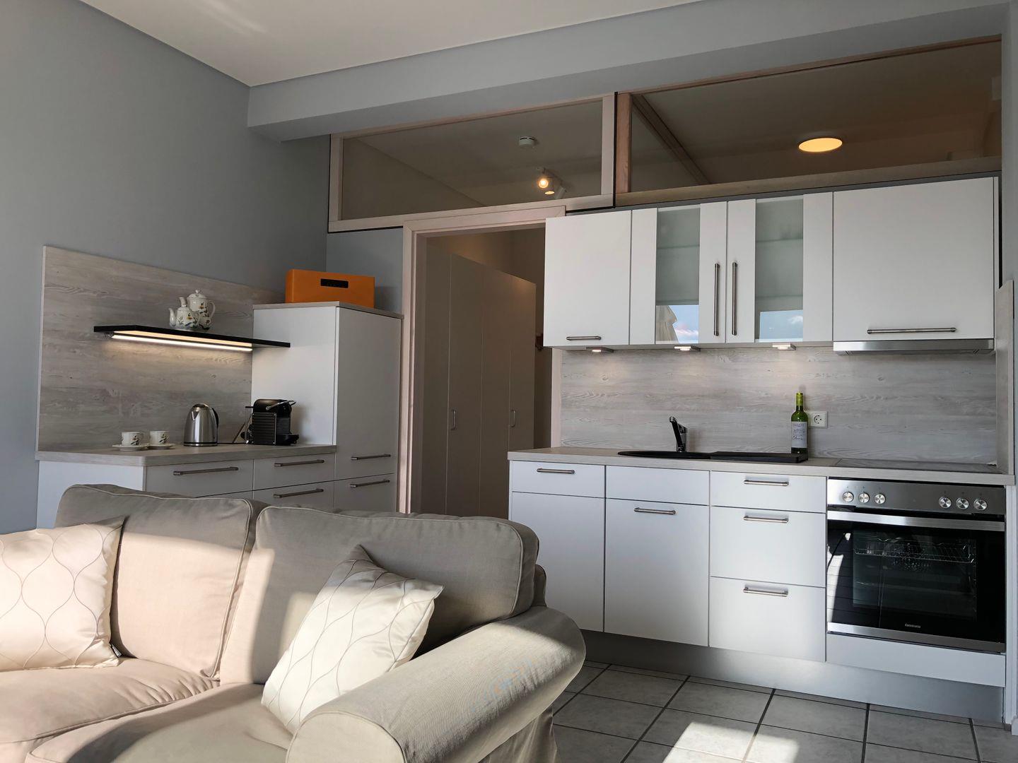 Die Wohnung besteht aus einem Wohn- und Esszimmer mit angrenzender Küchenzeile.