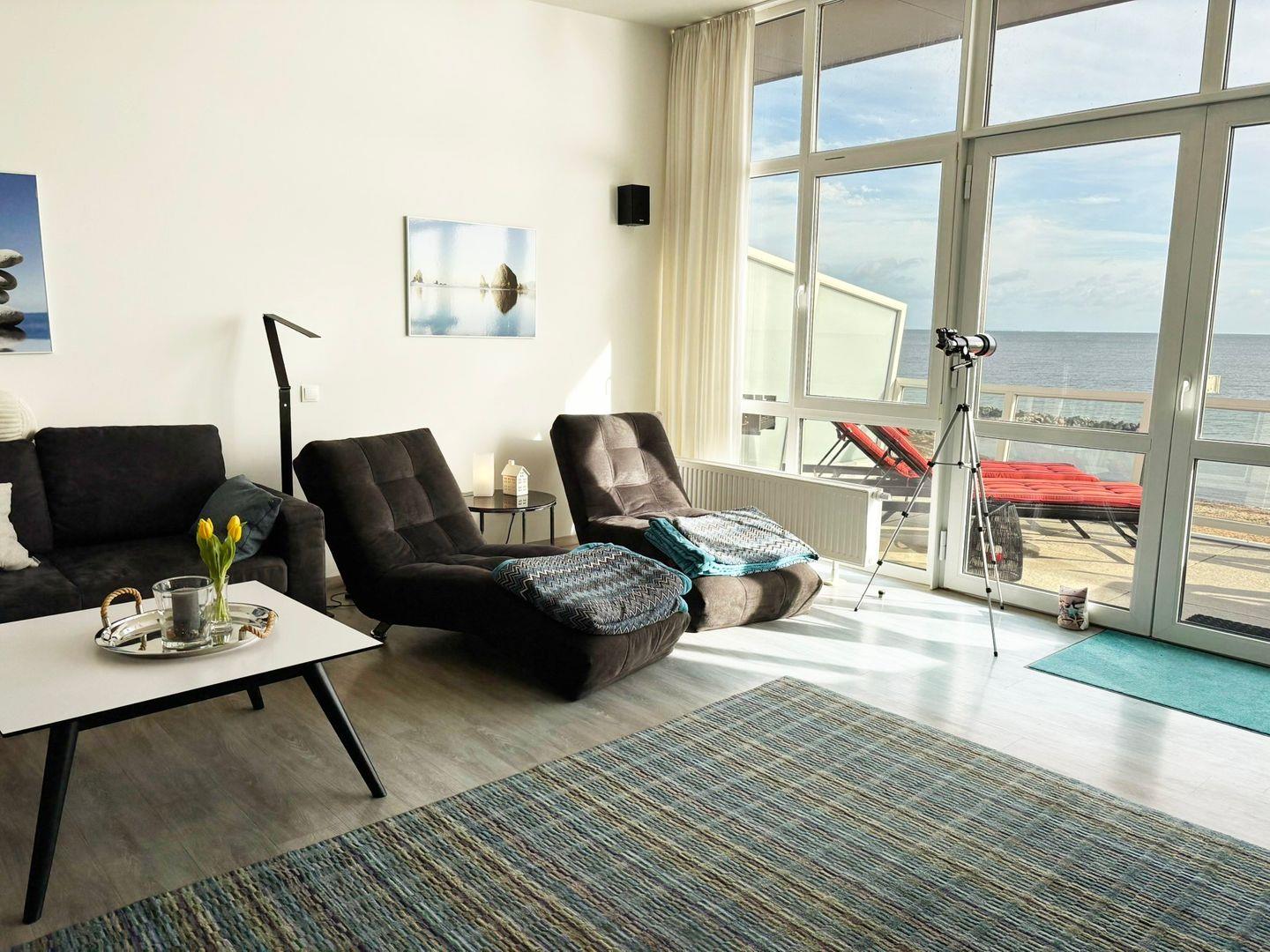 Beach Front – Whg. 24 D vereint stilvolle Einrichtung, großzügigen Komfort und eine unvergleichliche Lage direkt am Meer – der perfekte Ort für alle, die das Rauschen der Wellen lieben, Freiheit genießen und ihren Urlaub in vollen Zügen auskosten möchten.