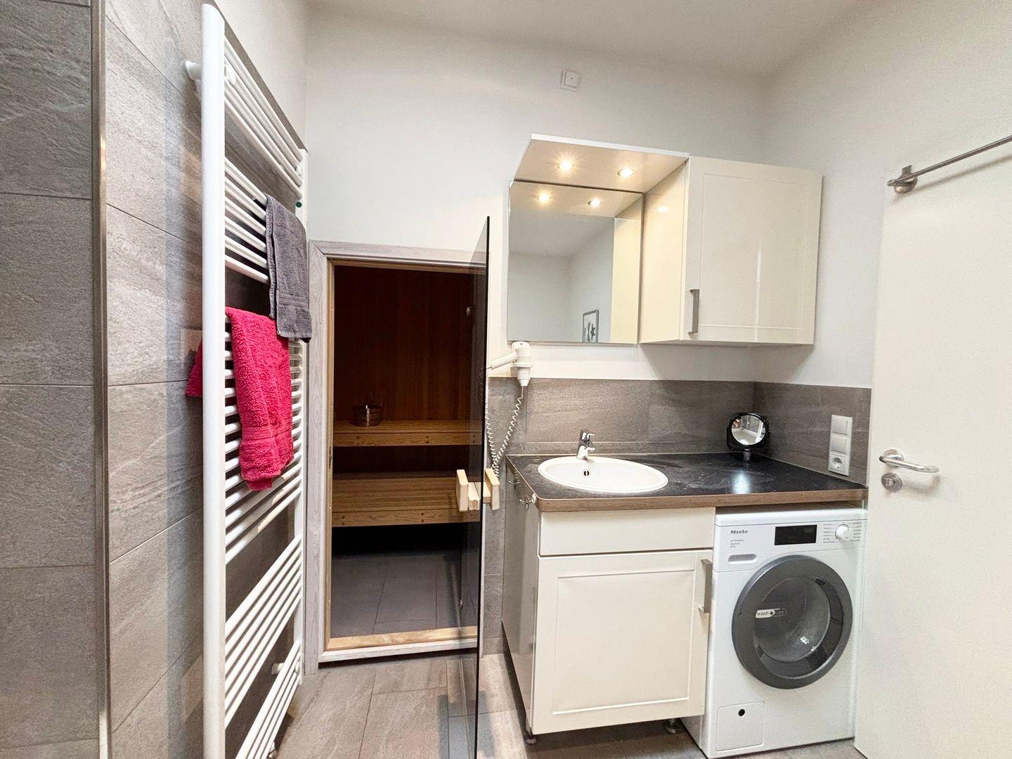 Ein echtes Highlight ist der private Wellnessbereich mit eigener Sauna – ein Ort zum Abschalten, Entspannen und neue Kraft tanken. Ob nach einem langen Strandtag oder an einem rauen Herbstnachmittag – hier genießen Sie Ihre ganz persönliche Auszeit. Das moderne Badezimmer bietet eine bodengleiche Dusche, eine Whirlwanne, einen stilvollen Waschtisch und einen Haartrockner für maximalen Komfort.
