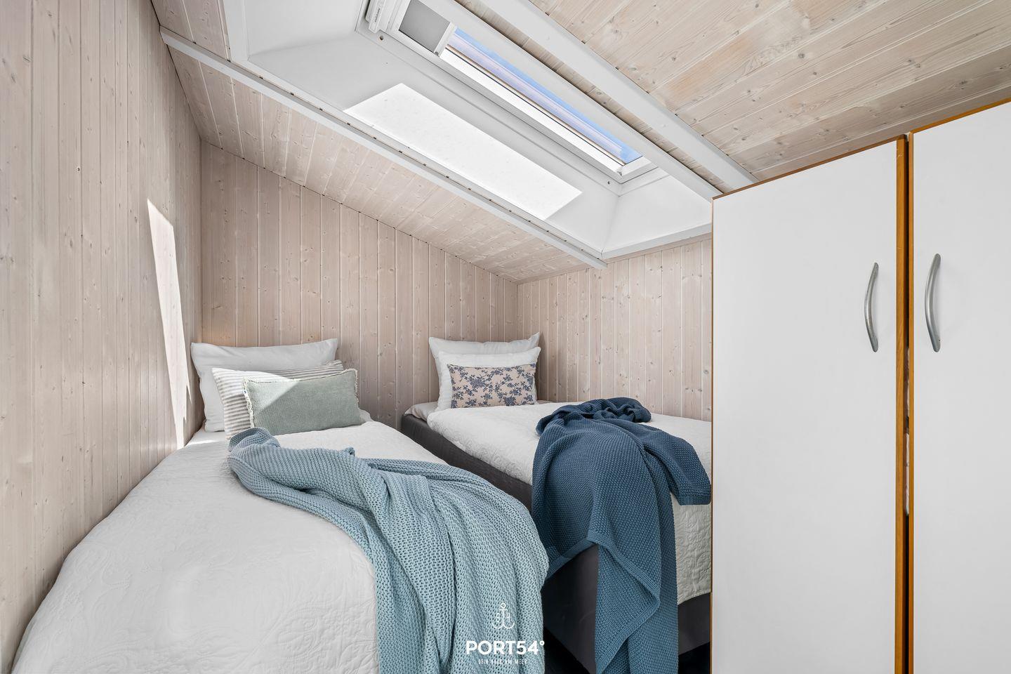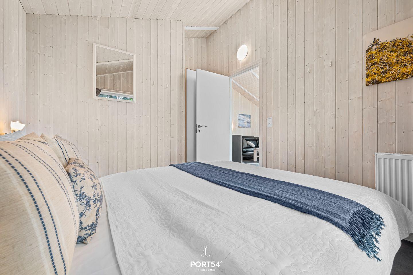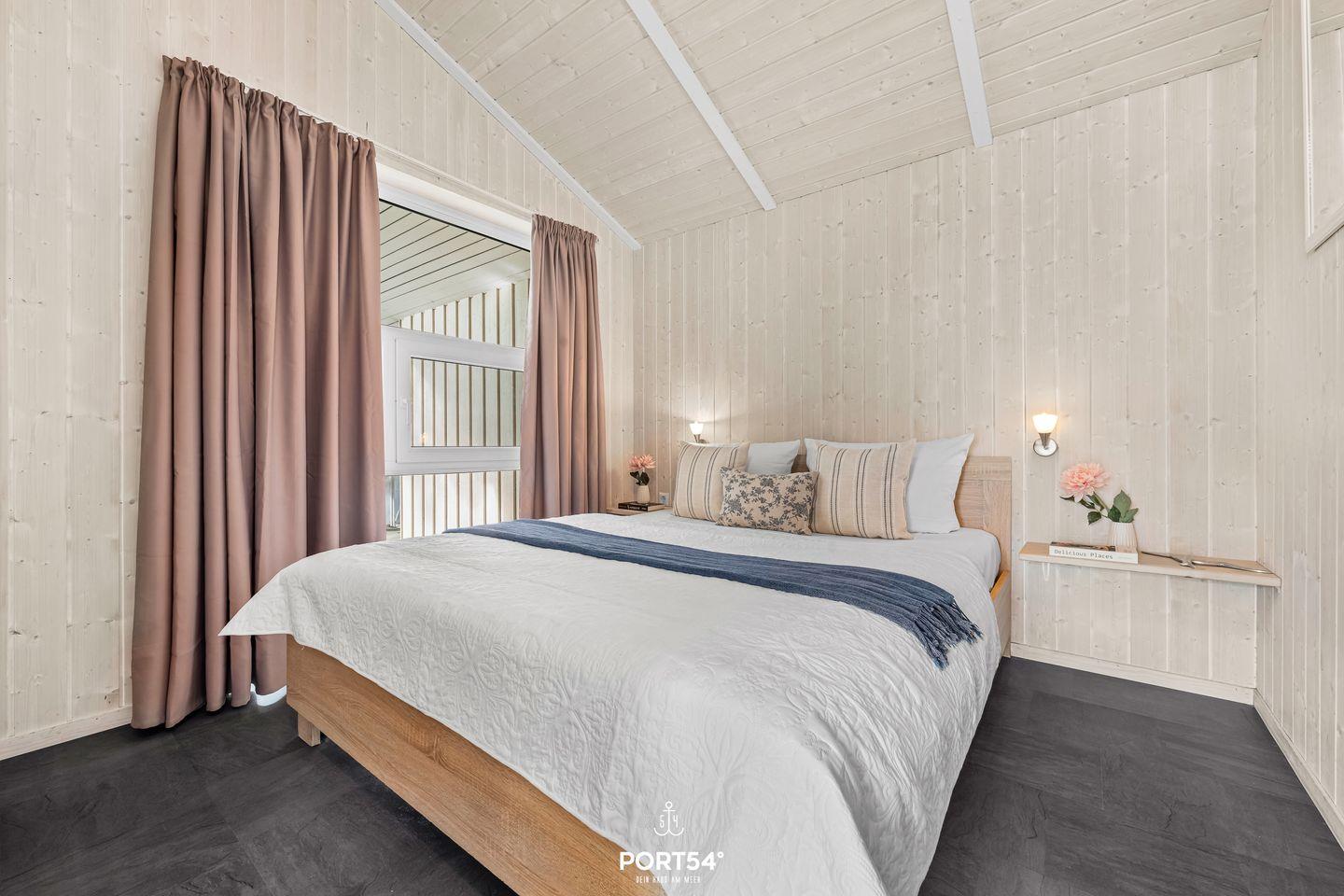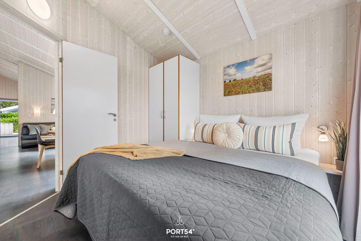 In vier gemütlichen Schlafzimmern schläfst Du in bequemen Doppelbetten (180x200 cm). In jedem Schlafzimmer befindet sich ein Kleiderschrank. Zwei weitere kleine Zimmer bieten insgesamt vier Einzelbetten (90x200 cm). Auch hier findest Du Stauraum für Deine Sachen vor. Bitte beachte: Die beiden kleinen Zimmer befinden sich unter der Dachschräge – kuschelig, aber mit etwas niedrigerer Deckenhöhe.