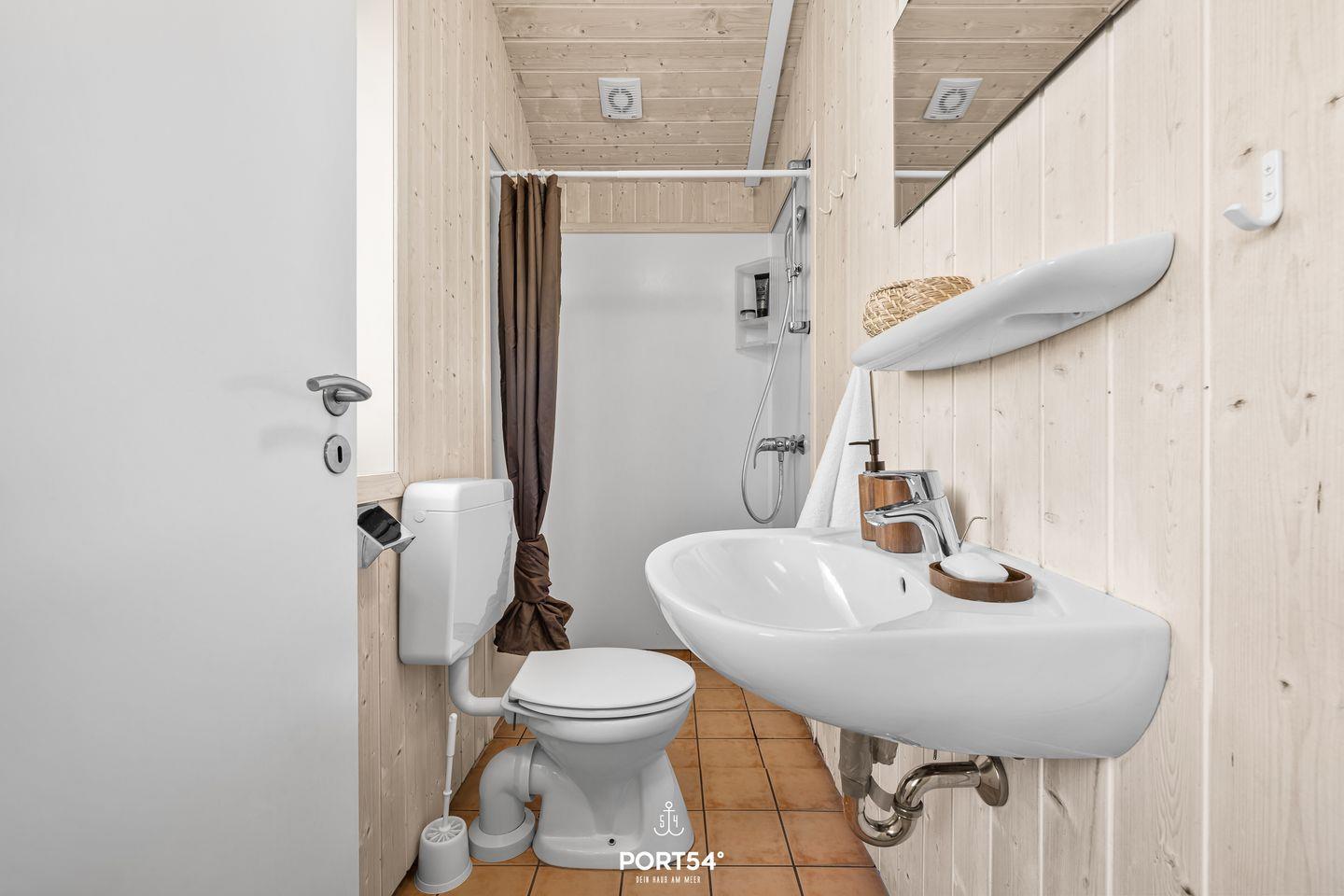 Für entspannte Wellnessmomente sorgt das Hauptbad mit ebenerdiger Dusche, Whirlwanne und finnischer Sauna. Eine Waschmaschine ist ebenfalls vorhanden. Zusätzlich gibt es ein weiteres, kleines Tageslichtbad mit ebenerdiger Dusche – ideal, wenn Du mit mehreren Personen unterwegs bist.
