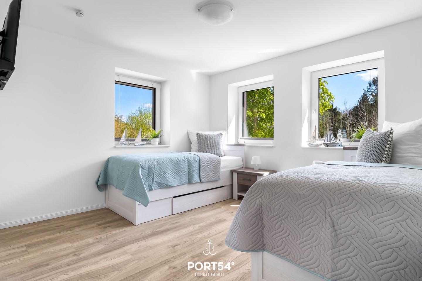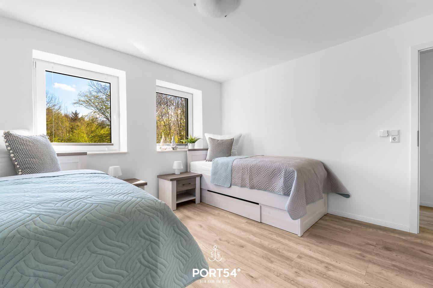 Die Wohnung befindet sich im 1. OG und bietet auf ca. 80m² Platz für bis zu 4 Personen. Der Wohn- und Essbereich besticht mit bodentiefen Fenstern, die einen tollen Blick auf die Schlei ermöglichen. Die offene Küche ist mit allem notwendigen ausgestattet, um leckere Gerichte zu zaubern. Ein geräumiges Duschbad mit ebenerdiger Dusche und 1 Gäste-WC stehen Ihnen zur Verfügung. Das 1 Schlafzimmer ist mit 1 Doppelbett und das andere mit 2 Einzelbetten ausgestattet. Eine E-Ladesäule ist vorhanden.