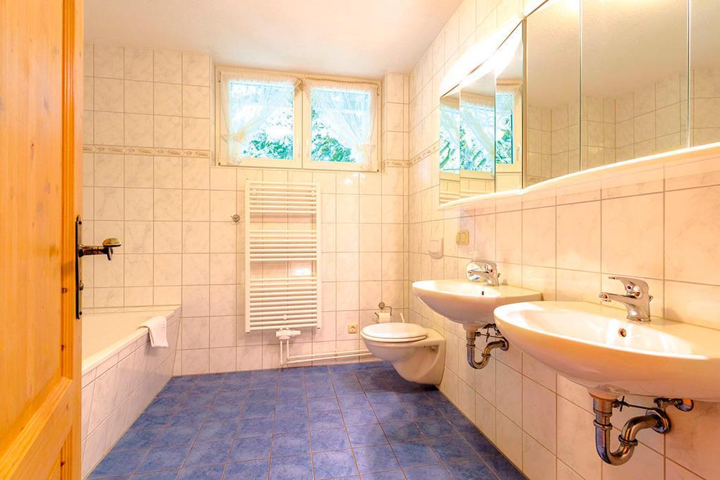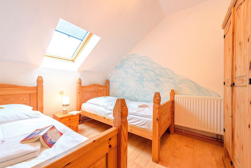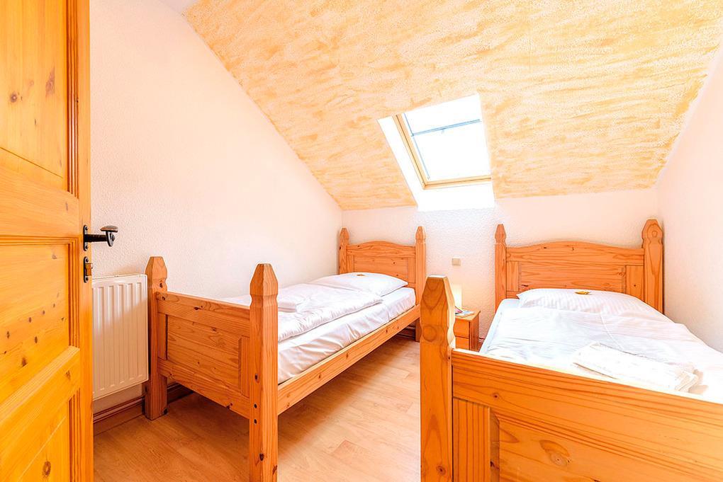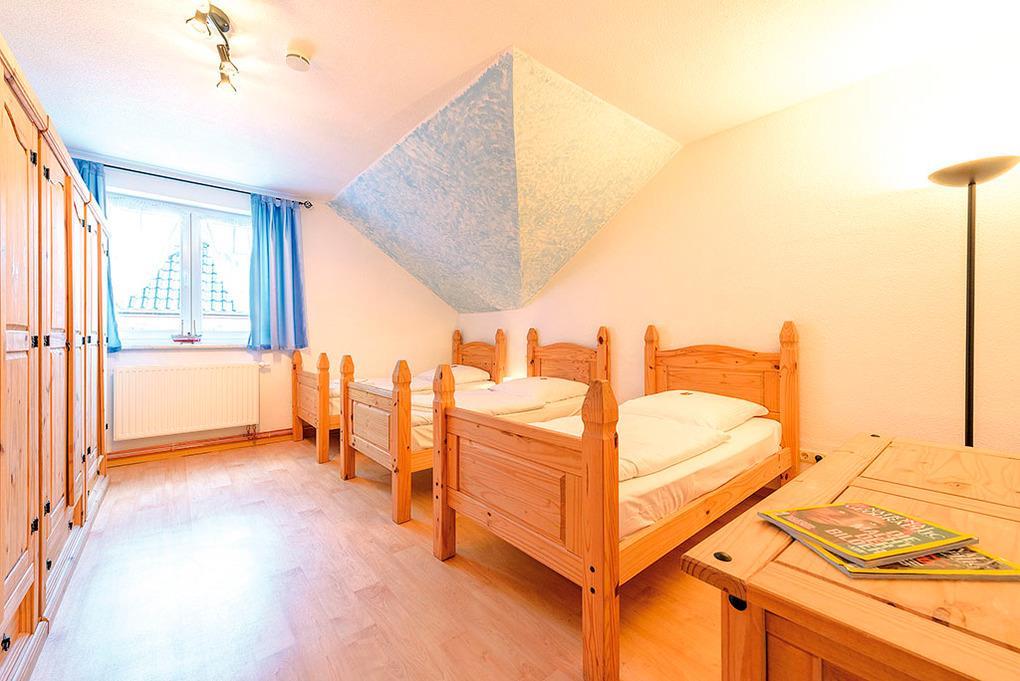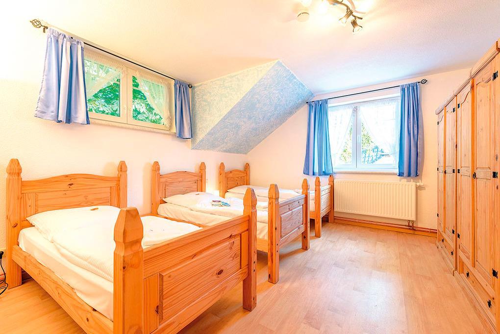 1. Etage: 2 Einzelzimmer. 3 Doppelzimmer jeweils mit 2 Einzelbetten. Zwei 3-Bettzimmer jeweils mit 3 Einzelbetten. Bad mit Du, Bw, 2 Wb, WC. Separates WC. Separate Ferienwohnung mit eigenem Eingang: Wohn-/Esszimmer mit Küchenzeile. 3-Bettzimmer mit 3 Einzelbetten. Bad mit Du, Wb, WC.