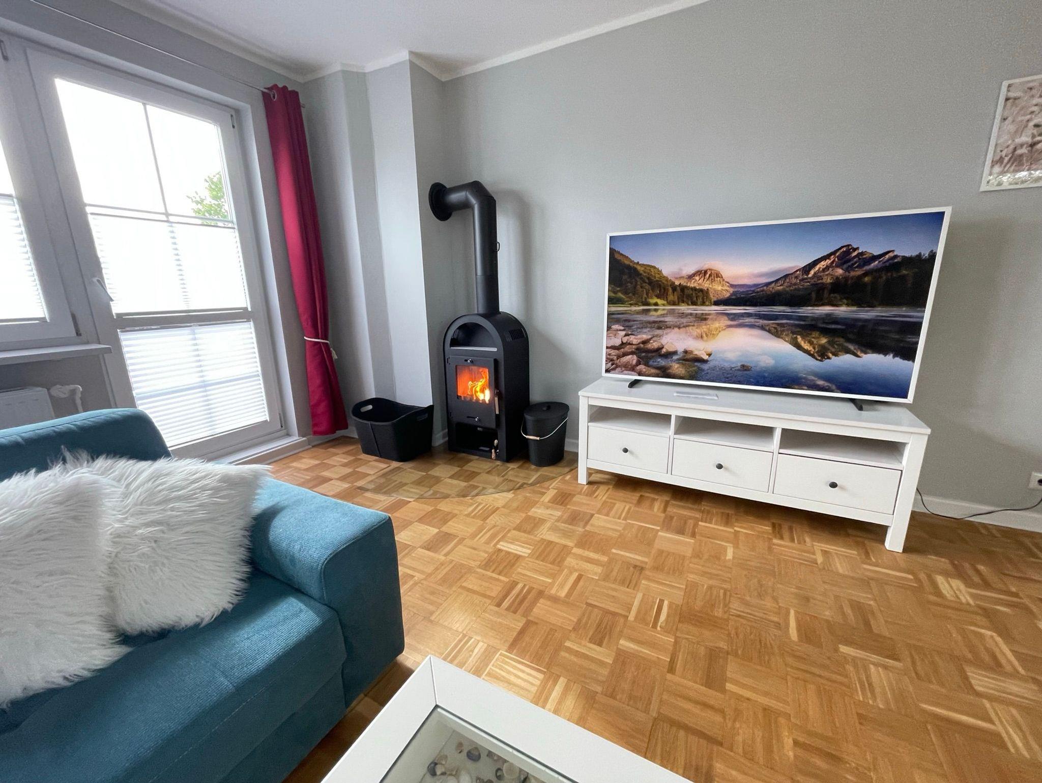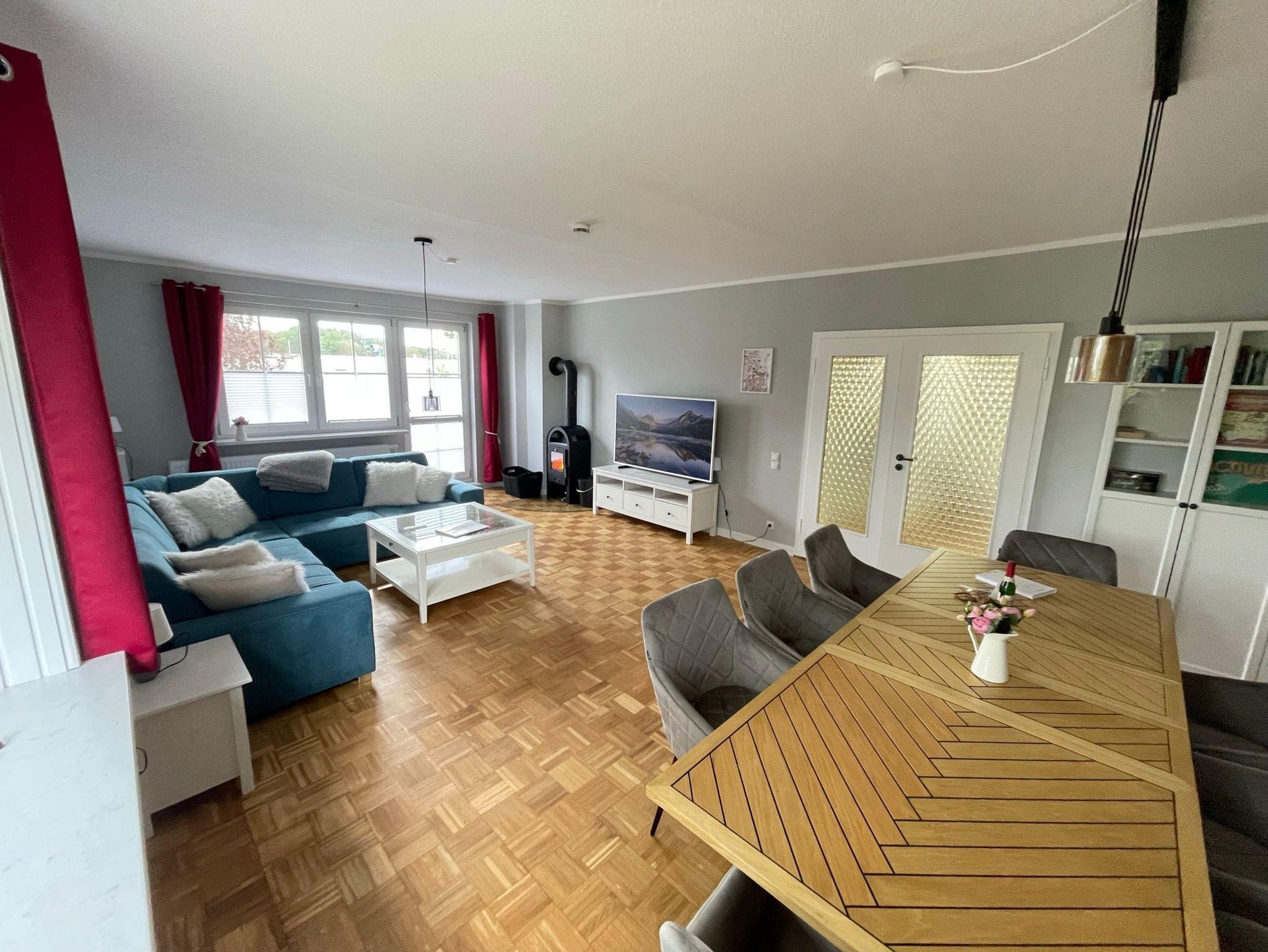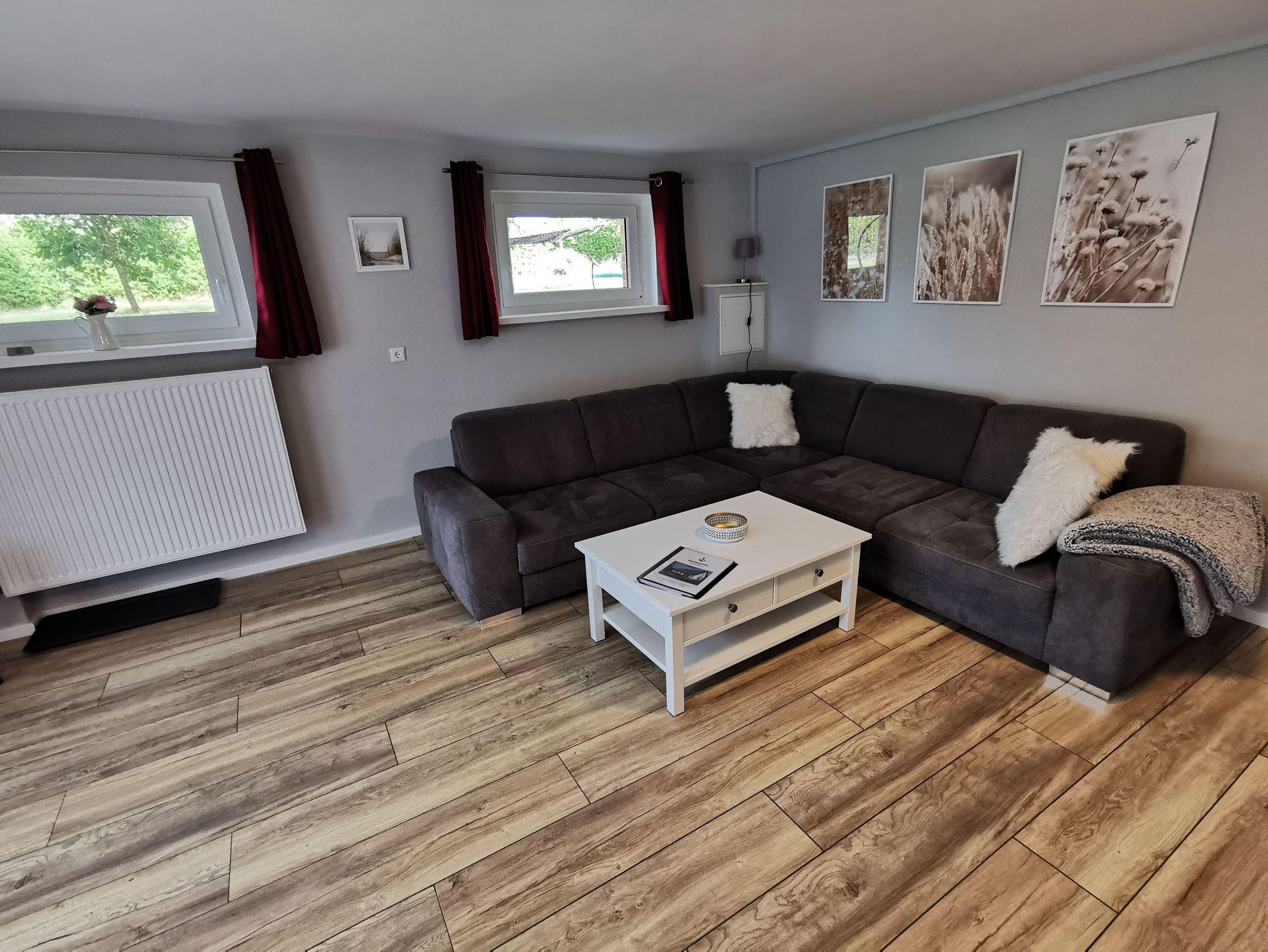 Die Wohnung 1 (im Obergeschoss und Erdgeschoss eines 1987 erbauten klassischen Rügenhauses) bietet eine grosse Terrasse mit Blick in den Garten und zur historischen Kirche, drei sep. Schlafzimmer, ein sehr grosses Wohnzimmer mit Kamin, eine voll ausgestattete Küche sowie ein Duschbad und ein WC.