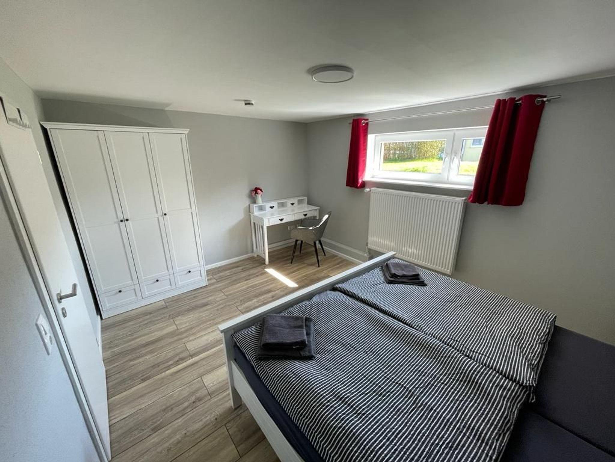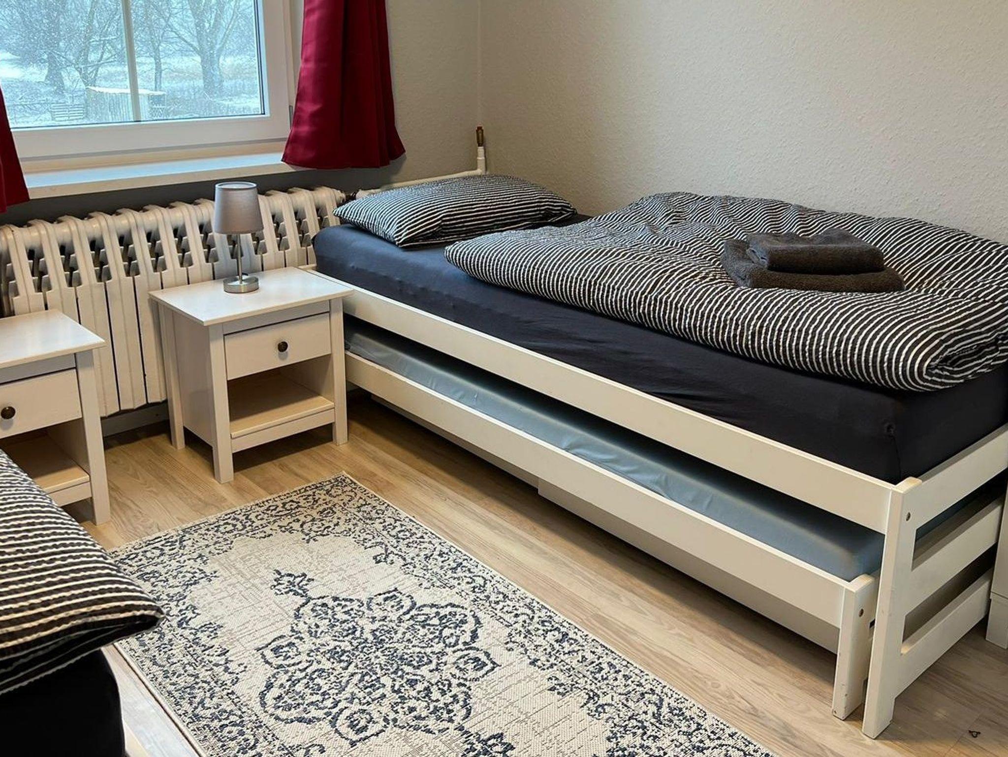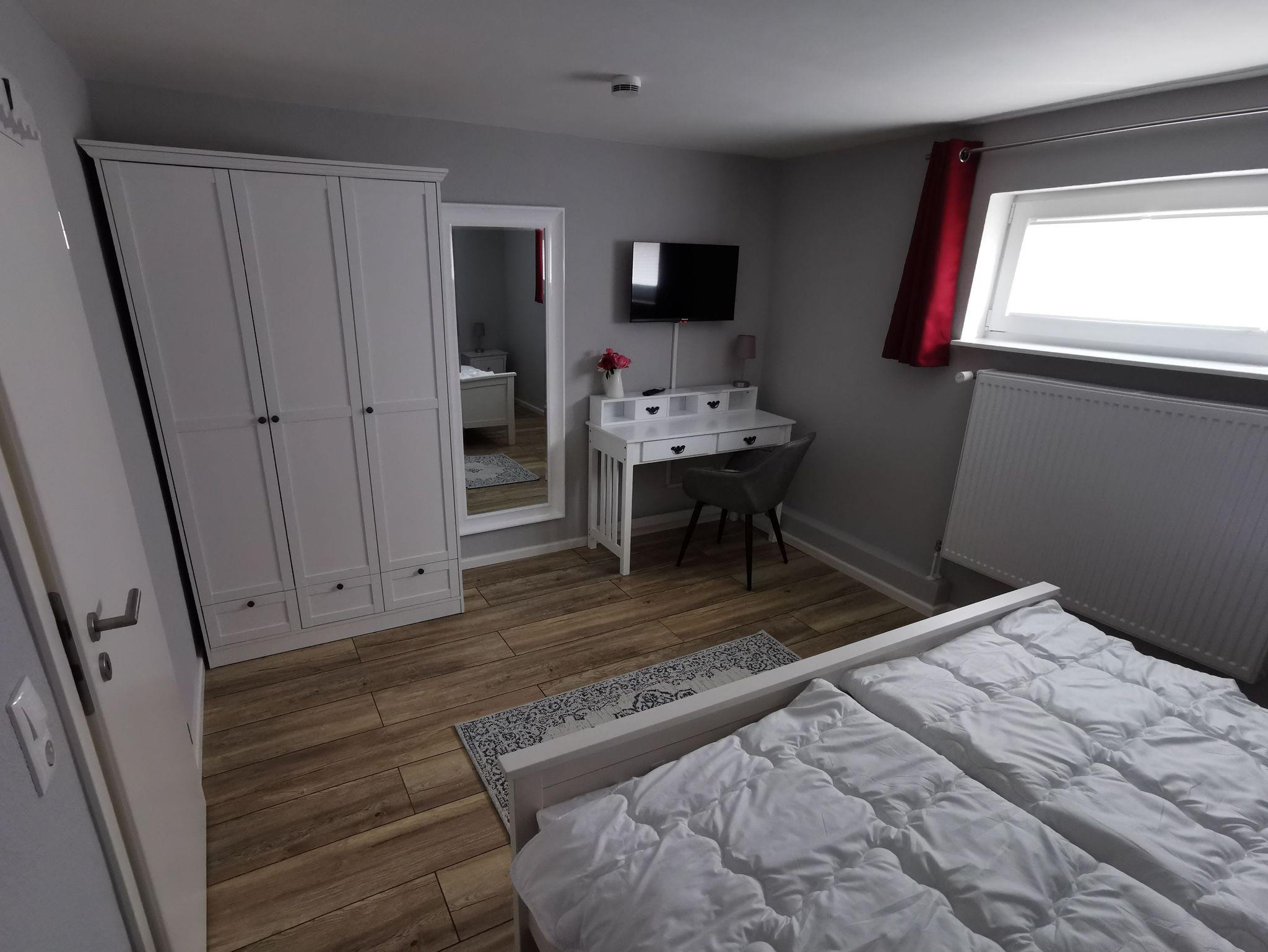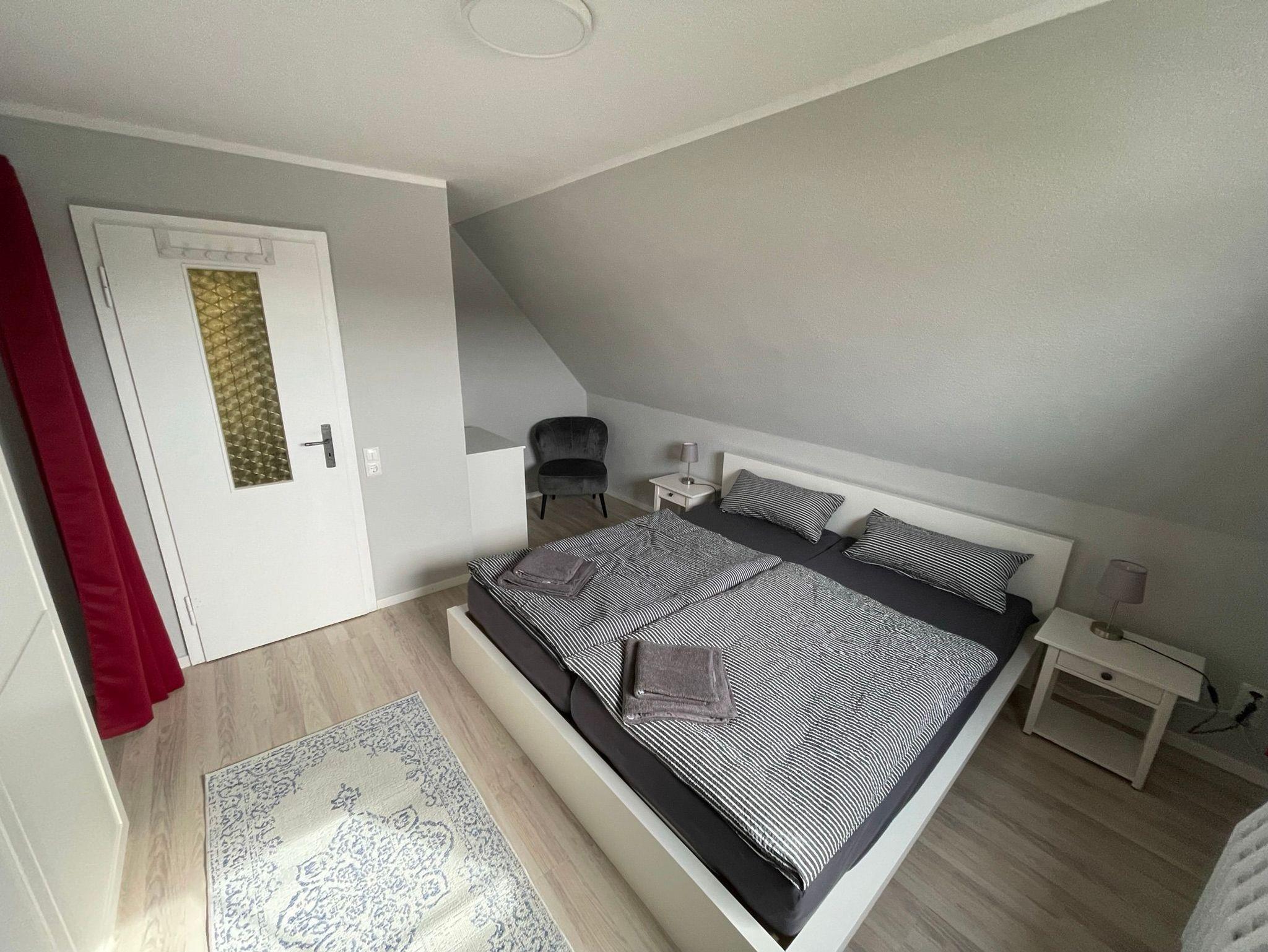 Die Wohnung 1 (im Obergeschoss und Erdgeschoss eines 1987 erbauten klassischen Rügenhauses) bietet eine grosse Terrasse mit Blick in den Garten und zur historischen Kirche, drei sep. Schlafzimmer, ein sehr grosses Wohnzimmer mit Kamin, eine voll ausgestattete Küche sowie ein Duschbad und ein WC.