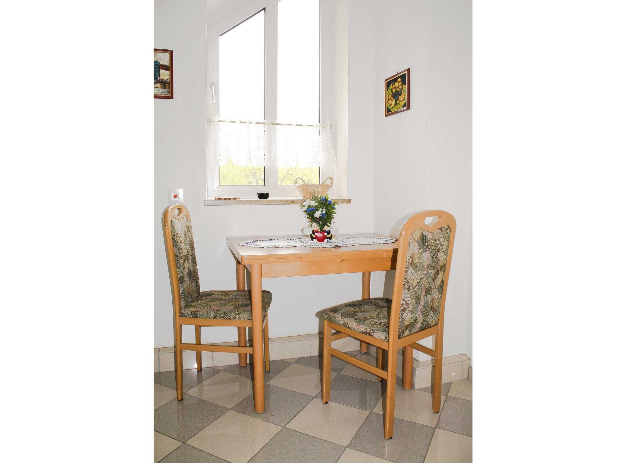 Die 2-Zimmerwohnung liegt im Dachgeschoß zur Südseite und ist für 2 Personen eingerichtet. Sie besteht aus einem Wohnraum mit Farb-TV, Radio, Einbauküche und Essecke ausgestattet mit Kaffeemaschine, Toaster und Wasserkocher, Schlafraum mit Doppelbett und PKW-Stellplatz. Nicht für Handwerker / Monteure geeignet.