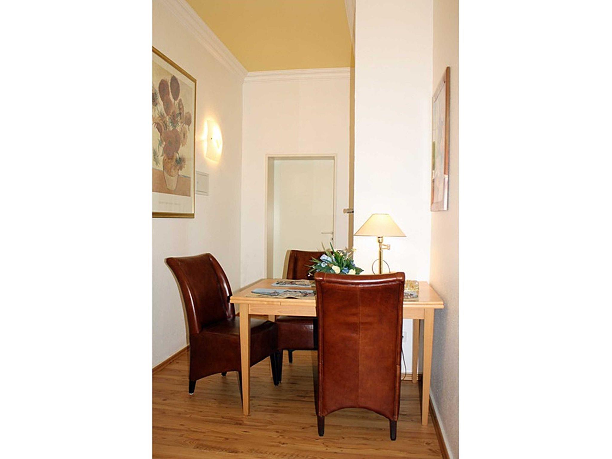 Die 2-Zimmerwohnung liegt im Erdgeschoß mit Gartensitzplatz zur Westseite und ist für 2-4 Personen eingerichtet. Sie besteht aus einem Wohnraum mit Schrankbett, Farb-TV, Radio, Einbauküche ausgestattet mit Kaffeemaschine, Toaster und Wasserkocher, Essdiele, Duschbad, Schlafraum mit Doppelbett und PKW-Stellplatz. Nicht für Handwerker / Monteure geeignet.