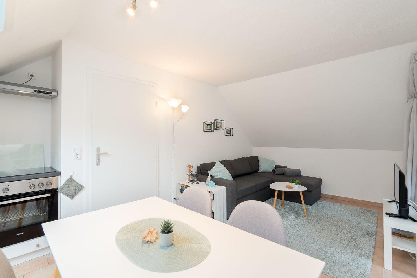 Die offene Küche ist harmonisch in den Wohnbereich integriert und eignet sich ideal für die flexible Selbstversorgung im Urlaub. Der angrenzende Essbereich kann ebenso gut für gemeinsame Spieleabende oder als ruhiger Arbeitsplatz genutzt werden. WLAN steht Ihnen kostenfrei zur Verfügung, sodass auch längere Aufenthalte komfortabel gestaltet werden können. Für Unterhaltung sorgen ein TV sowie weitere Annehmlichkeiten für entspannte Abende in der Wohnung.