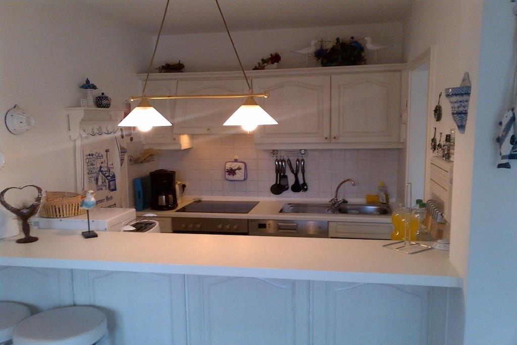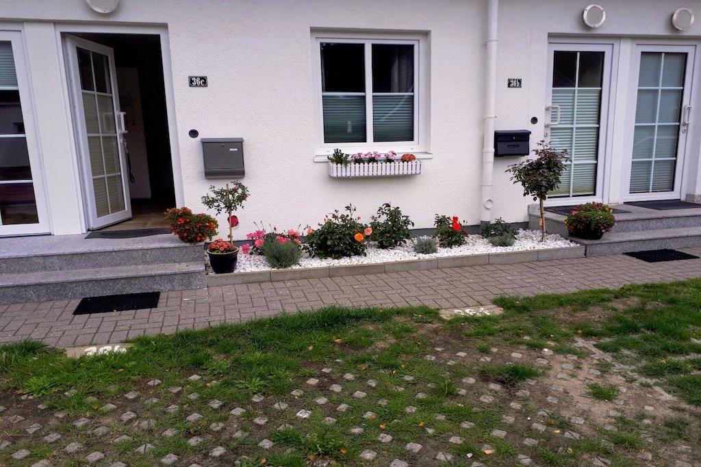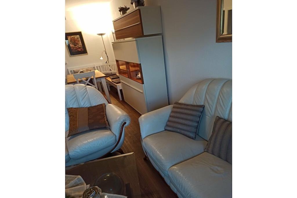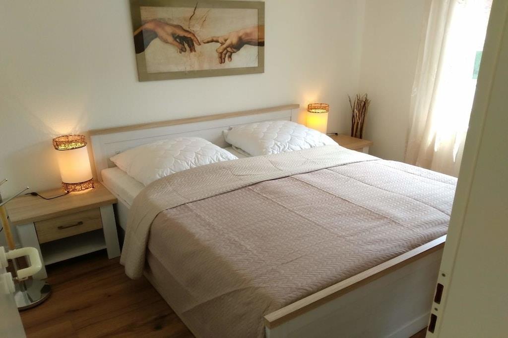 In der schönen 2-Zimmer Erdgeschoss-Wohnung finden Sie 2 Schlafplätze vor. Ein separates Schlafzimmer mit Doppelbett. Die Wohnung wurde Anfang 2018 aufwendig renoviert!! Das Bad ist ausgestattet mit Toilette und Dusche und wurde im Januar 2018 total renoviert!! Die Küchenzeile mit Tresen ist komplett bestückt (mit E-Herd, Geschirrspüler, Mikrowelle etc.). Der gemütliche Wohnbereich verfügt über SAT TV und Stereoanlage. In der gesamten Wohnung werden Sie durch eine Fußbodenheizung verwöhnt. Auf der Terrasse können Sie auf Liegestühlen entspannen oder am Tisch dinieren. Im Interesse unserer Feriengäste bitten wir Sie in der Ferienwohnung nicht zu rauchen.