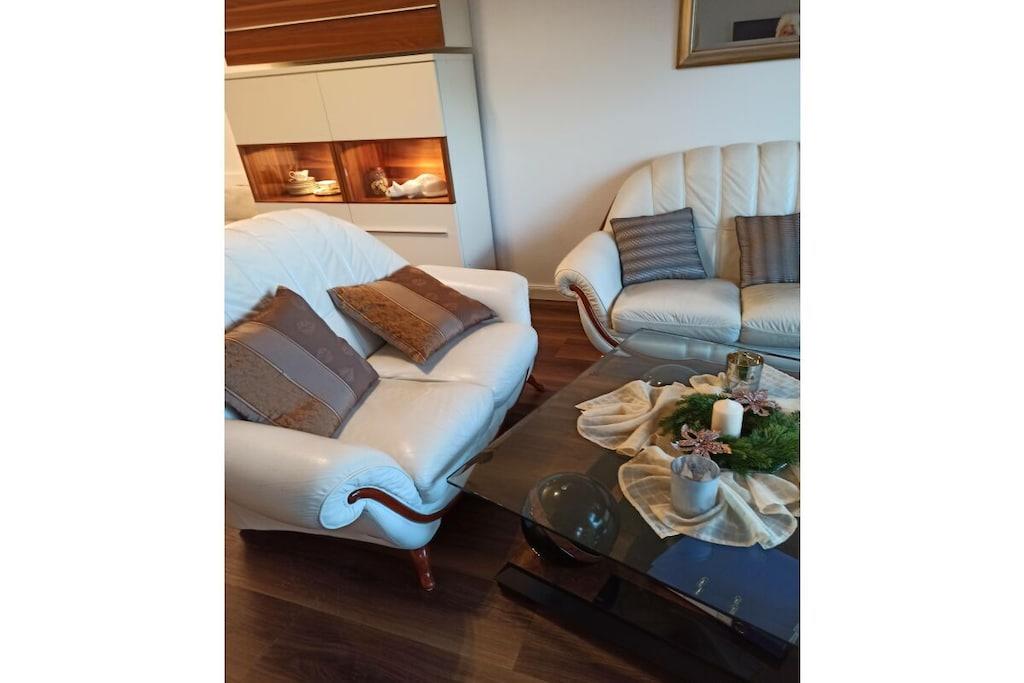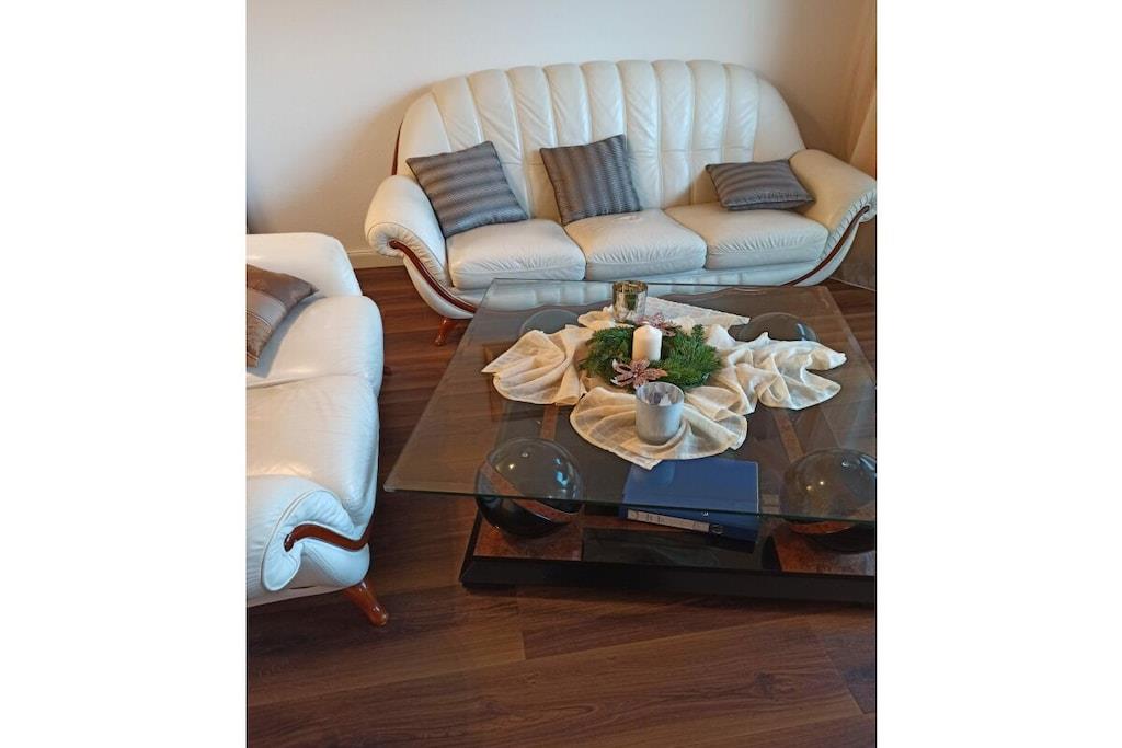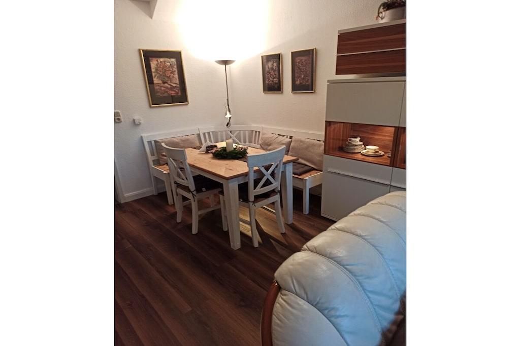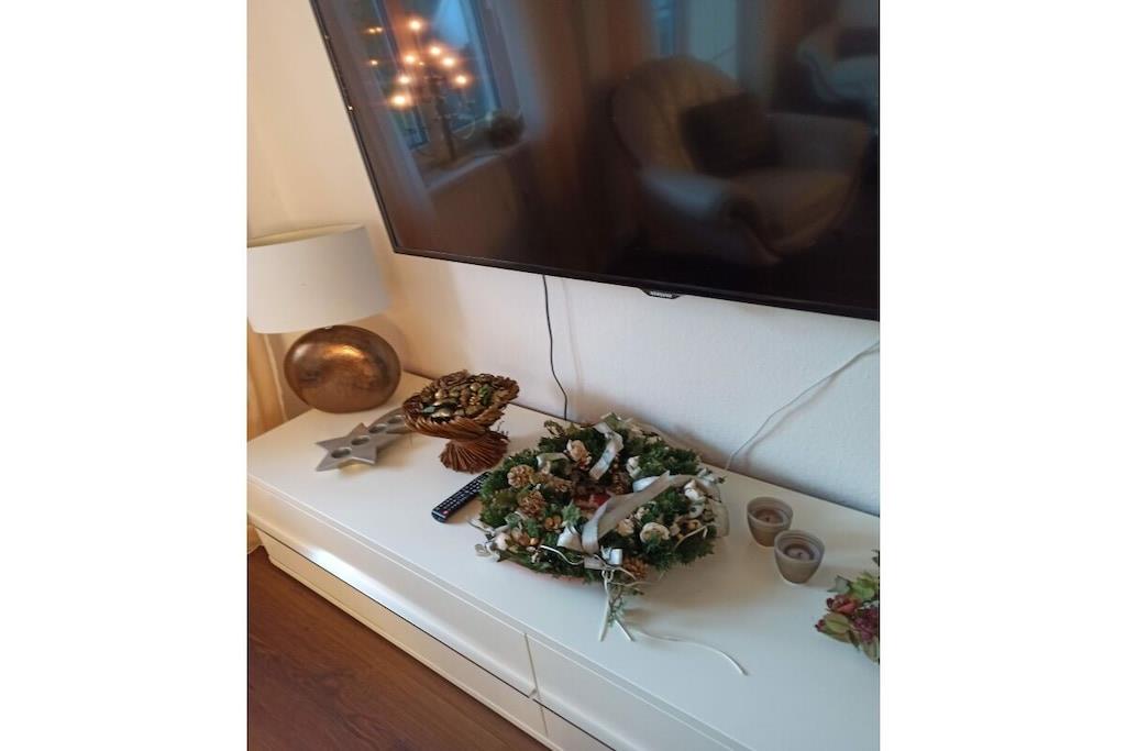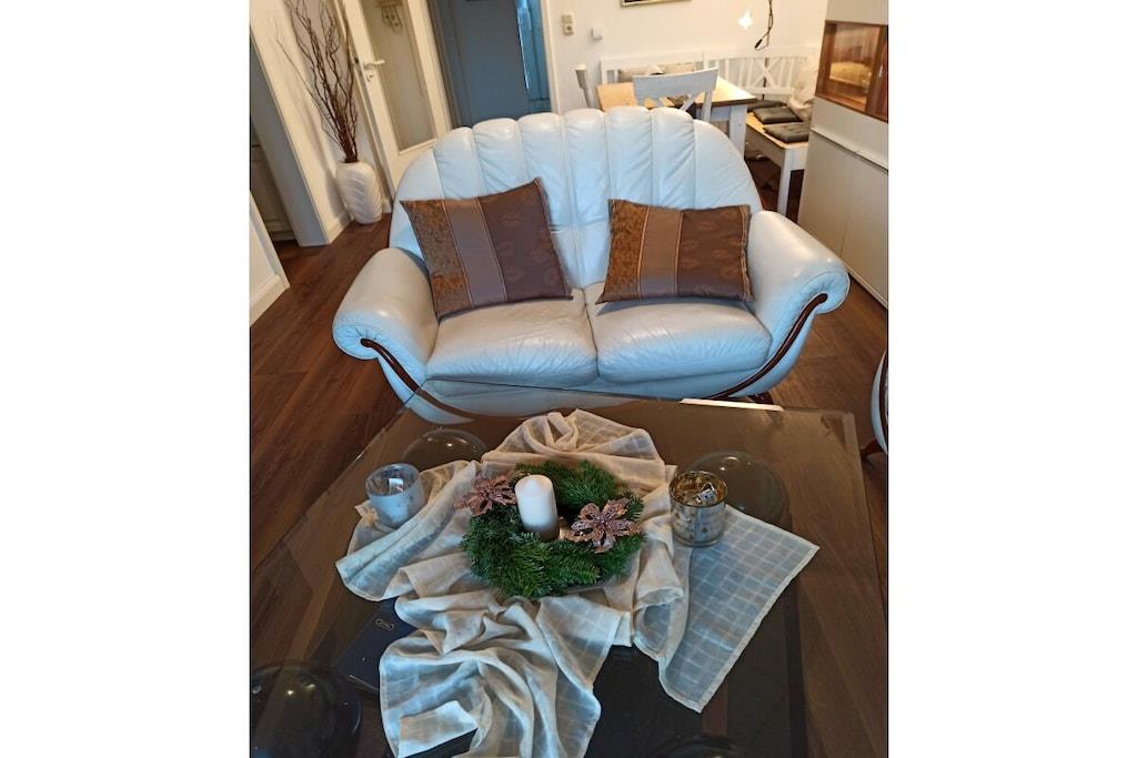 In der schönen 2-Zimmer Erdgeschoss-Wohnung finden Sie 2 Schlafplätze vor. Ein separates Schlafzimmer mit Doppelbett. Die Wohnung wurde Anfang 2018 aufwendig renoviert!! Das Bad ist ausgestattet mit Toilette und Dusche und wurde im Januar 2018 total renoviert!! Die Küchenzeile mit Tresen ist komplett bestückt (mit E-Herd, Geschirrspüler, Mikrowelle etc.). Der gemütliche Wohnbereich verfügt über SAT TV und Stereoanlage. In der gesamten Wohnung werden Sie durch eine Fußbodenheizung verwöhnt. Auf der Terrasse können Sie auf Liegestühlen entspannen oder am Tisch dinieren. Im Interesse unserer Feriengäste bitten wir Sie in der Ferienwohnung nicht zu rauchen.