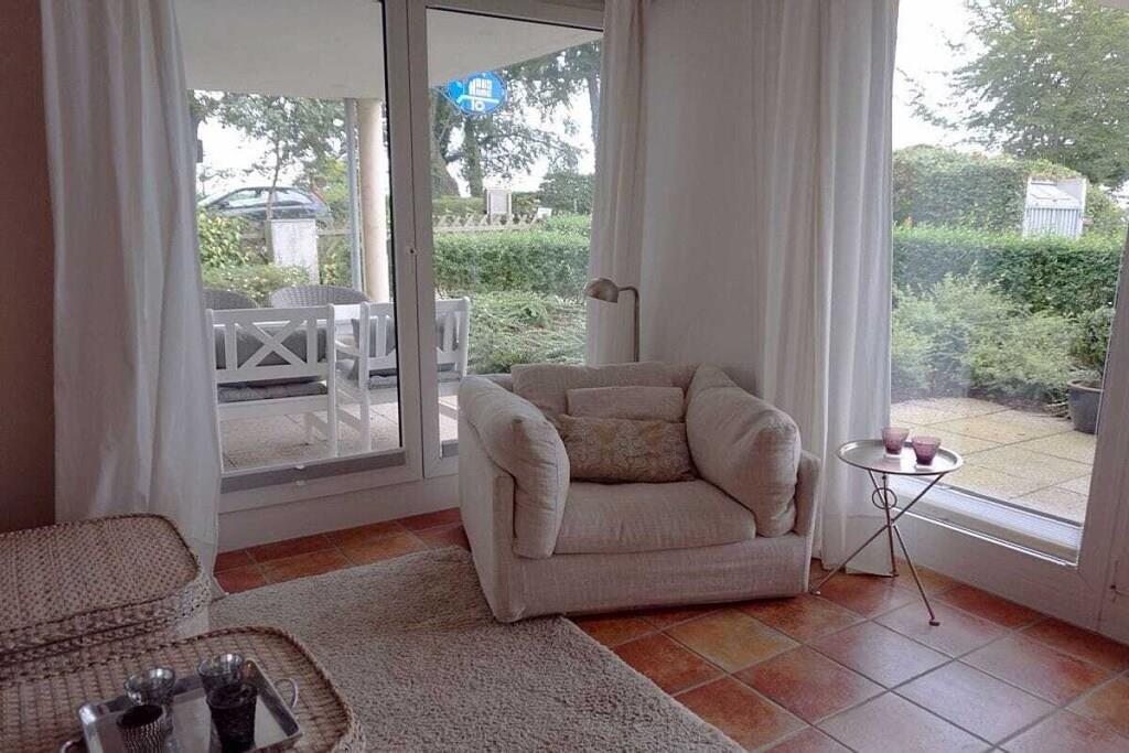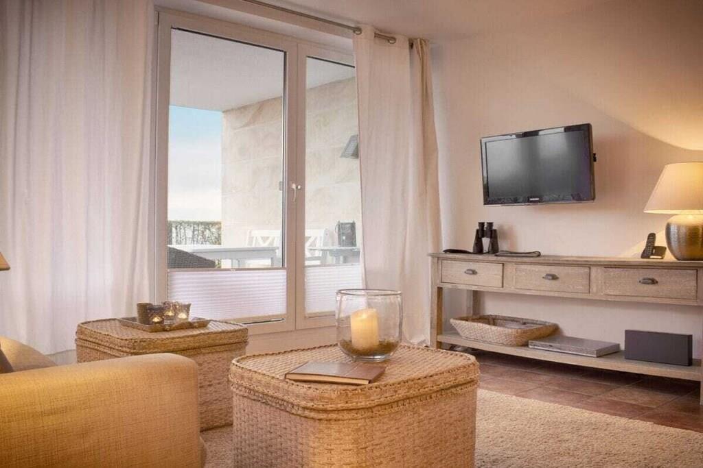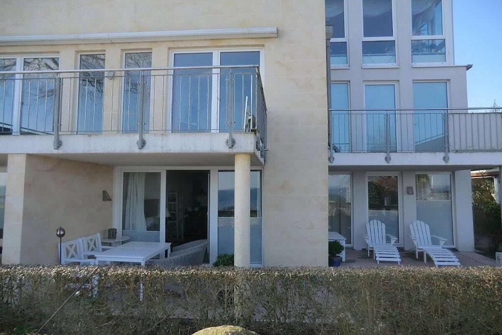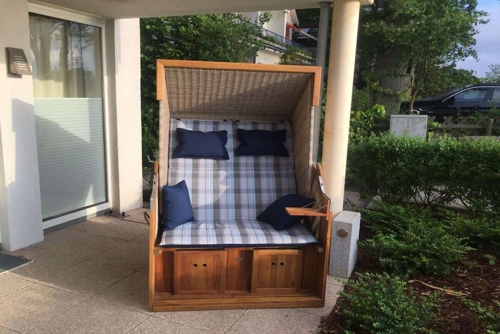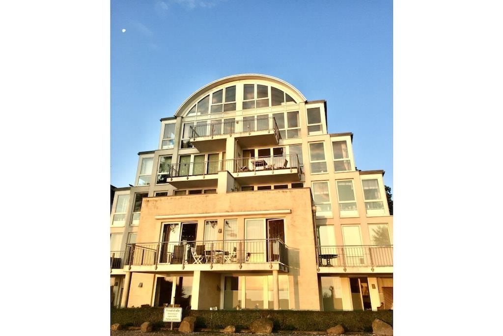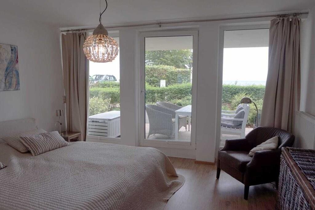 Luxuriöse Ferienwohnung direkt am Strand. Genießen Sie Ihren Urlaub in vollen Zügen. Unsere Ferienwohnung ist Raum zum Wohlfühlen und spiegelt mit den natürlichen Materialien eine harmonische Atmosphäre wieder. Sie haben sowohl vom Wohn- als auch vom Schlafzimmer 100%igen Meerblick. Hier können Sie Ihren Urlaub mit einem Optimum an Ruhe, Bequemlichkeit und höchstem Komfort erleben. Die moderne Einbauküche bietet alle Möglichkeiten um ein leckeres Mahl zu zaubern und ist offen zum Wohn-und Essbereich. Die Einrichtung lädt zum entspannen ein und Sie werden schnell das Gefühl haben: hier bin ich zuhause, hier will ich sein. In der Tiefgarage ist Ihr Auto sicher untergestellt und Sie gelangen von dort mit dem Aufzug zur Wohnung im EG.