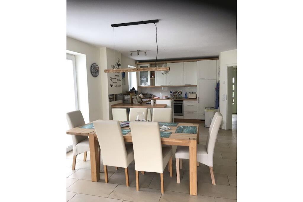 Dieses moderne Ferienhaus bietet Platz für 2 - 8 Personen. Das Ferienhaus ist sehr modern und aufwendig eingerichtet. Es sind 3 separate Schlafzimmer auf den beiden oberen Ebenen vorhanden. Im großen Schlafzimmer befindet sich zusätzlich eine Schlafcouch für 2 Personen und ein festes Babybett. Zusätzlich zum Familienbad mit Fußbodenheizung, geräumiger Dusche und Badewanne ist im Erdgeschoss ein Gäste-WC mit Dusche vorhanden. Eine moderne, vollausgestatte Küche liegt, wie auch das große Wohn- und Esszimmer, im Erdgeschoss. Von dort erreicht man die große Terrasse und den etwa 150 qm großen Garten. 2 Stellplätze machen das Haus auch für 2 Familien attraktiv.