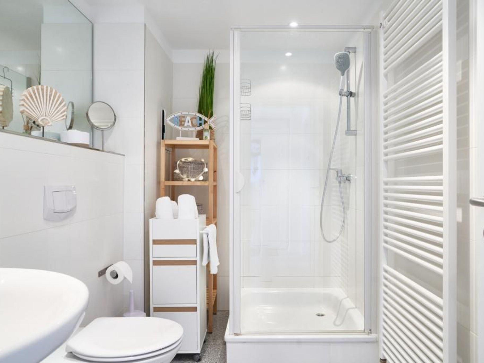 Das Duschbad ist in heller Optik gehalten. Der ansprechende Wohnbereich ist mit einer schönen Küchenzeile, einem Essbereich sowie einem gemütlichen Wohnbereich mit einer Sofaecke (Schlafsofa) ausgestattet. Neben einem Flachbildfernseher steht Ihnen selbstverständlich kostenloses WLAN zur Verfügung. Vom Wohnbereich aus gelangen Sie auf den Balkon. Von hier haben Sie einen schönen Ostseeblick. Die helle Küche lässt keine Wünsche offen. Der Esstisch bietet Ihnen ausreichend Platz für gesellige Stunden.