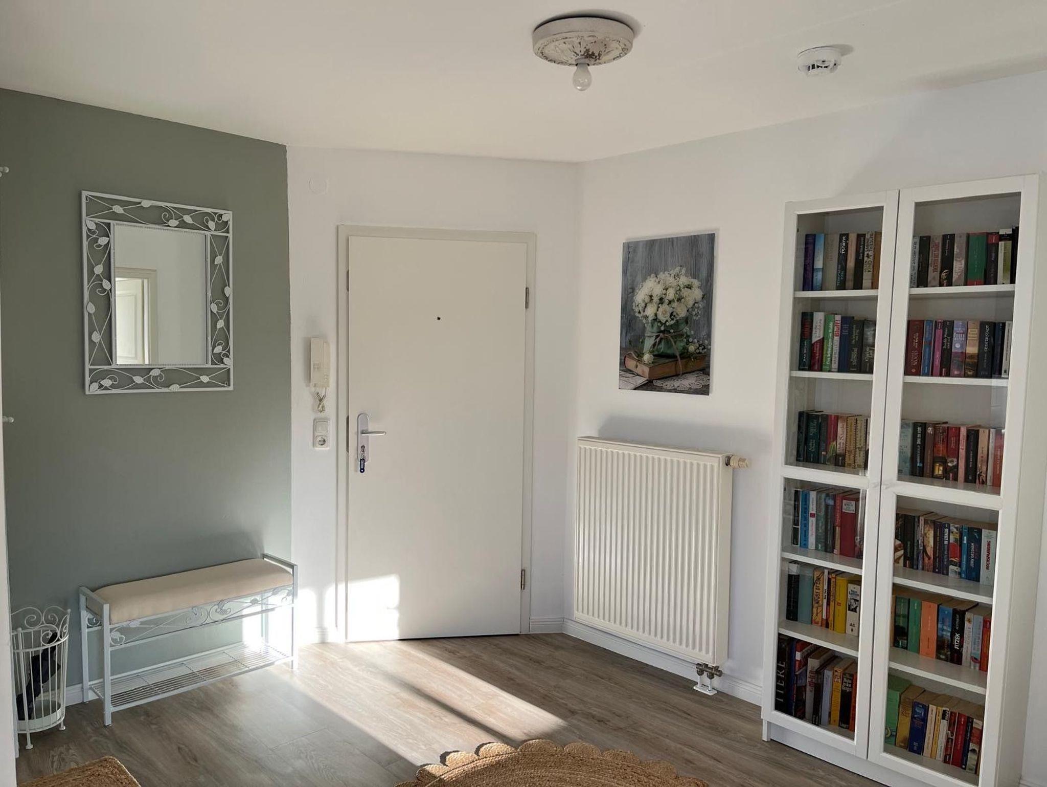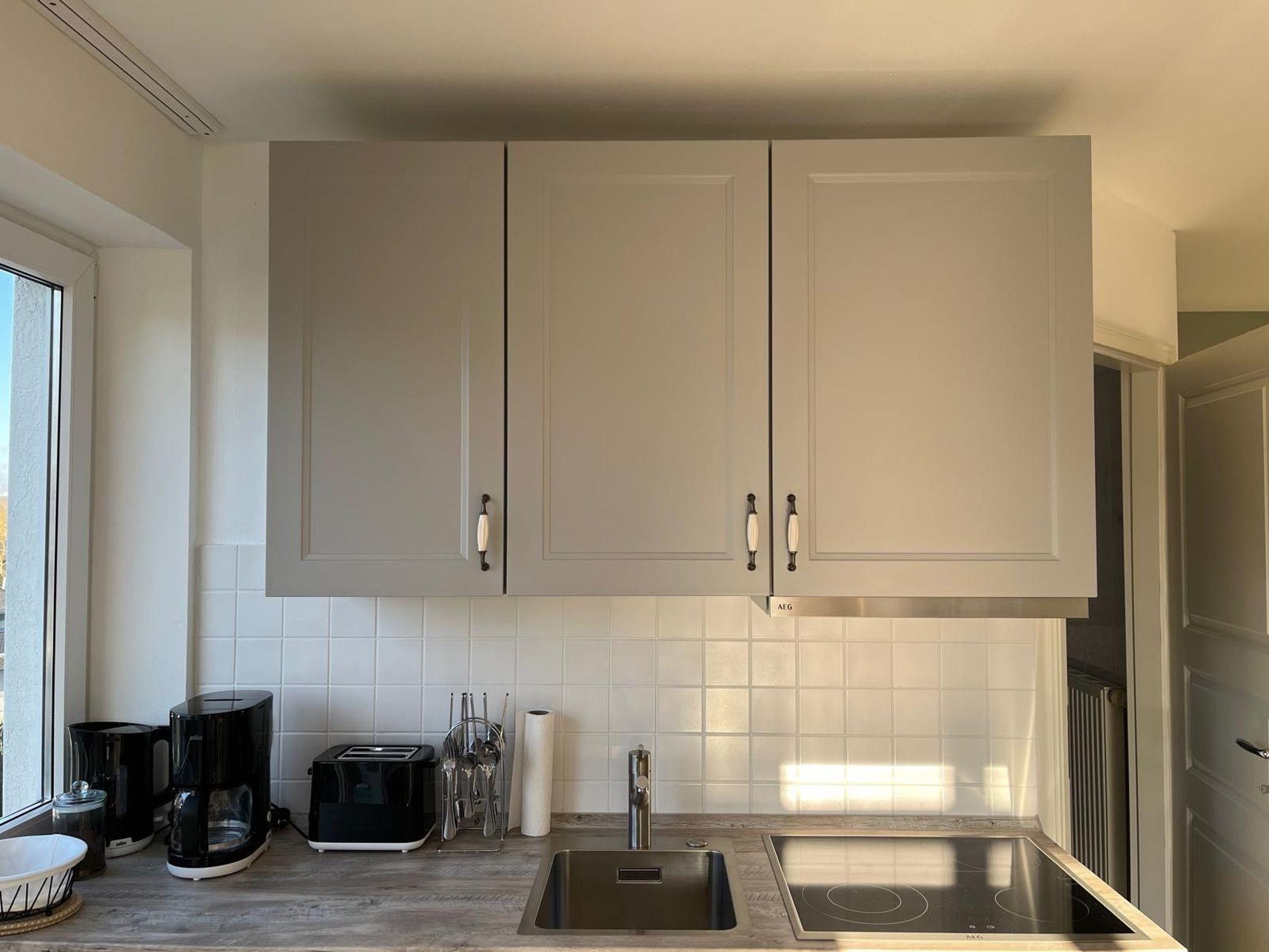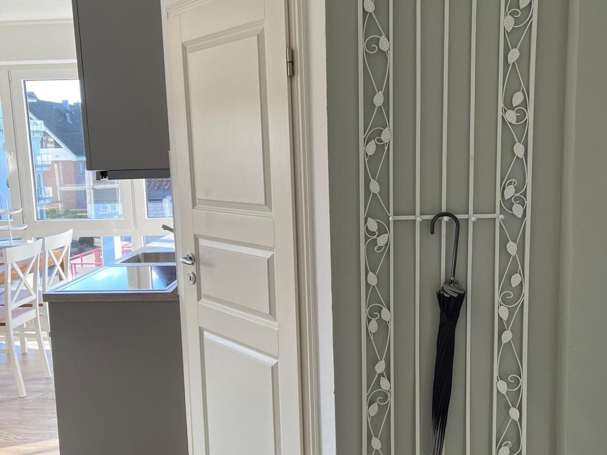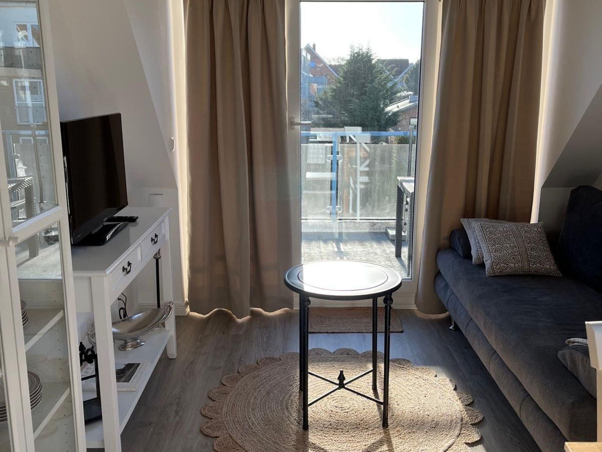 Charmante sonnige 2 Zimmer Wohnung, 36 Quadratmeter, im Landhausstil mit Balkon und Meerblick! Erholung pur! Das Badezimmer ist mit Dusche und WC ausgestattet und hat ein Fenster. Das gemütliche Schlafzimmer verfügt über 2 Einzelbetten 90 x 200 cm, einen Nachttisch und Kleiderschrank. Die offene Einbauküche verfügt über Markengeräte wie Kühlschrank, Backofen, Herd, Geschirrspülmaschine, Umluftabzugshaube, Kaffeemaschine, Toaster sowie Wasserkocher.