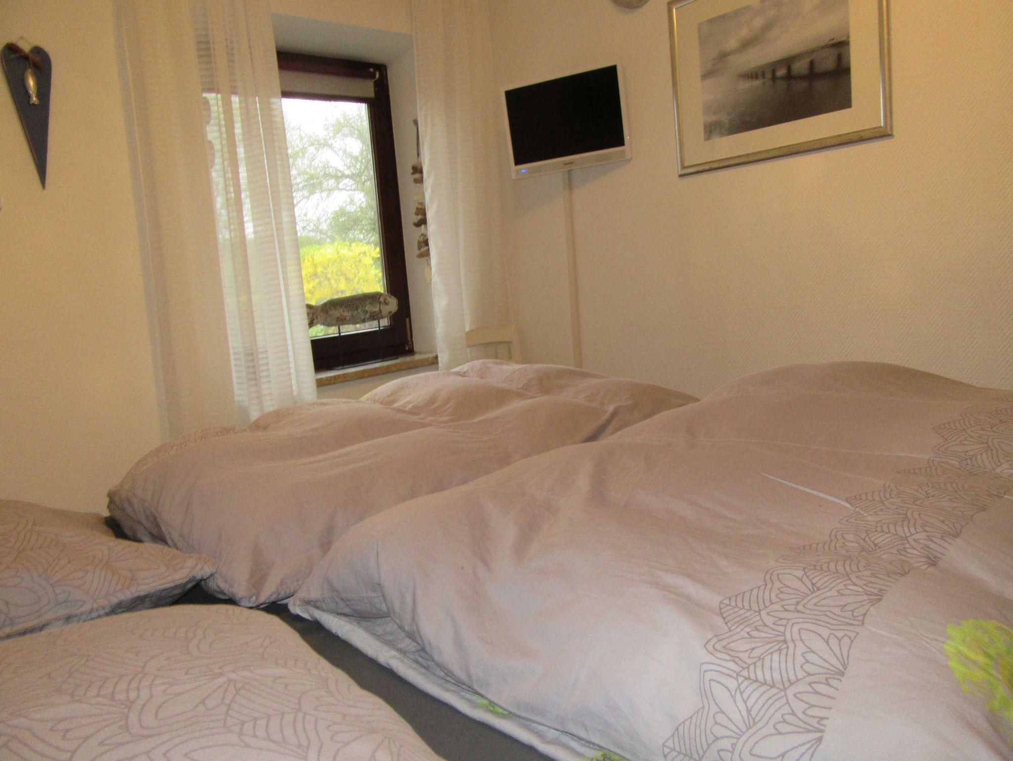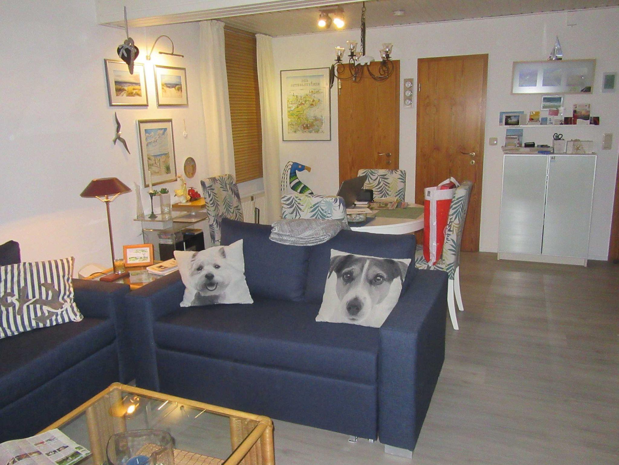 4-Sterne-Unterkunft: ca. 50 m² Ferienwohnung mit großer, eingezäunter Terrasse und 80cm hohem Hundeweglaufschutz.. Ideal für 2 Personen, max. 4 Personen (dann aber keine 4-Sterne mehr). Sehr gut ausgestattet. Liebevoll im Detail. Aquarelle, Kunstobjekte und hochwertige TV / DVD+CD Ausstattung für ein schönes Urlaubs-Zuhause. Pkw-Stellplatz. Fahrradraum (nicht abschließbar). Wäschepaket, Internet und Waschmaschine sind inklusiv. Maximal 2 Hunde, keine Kampfhunde oder Dauerbeller.