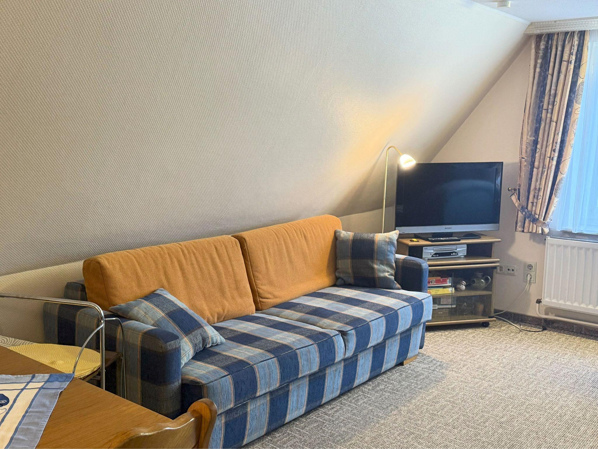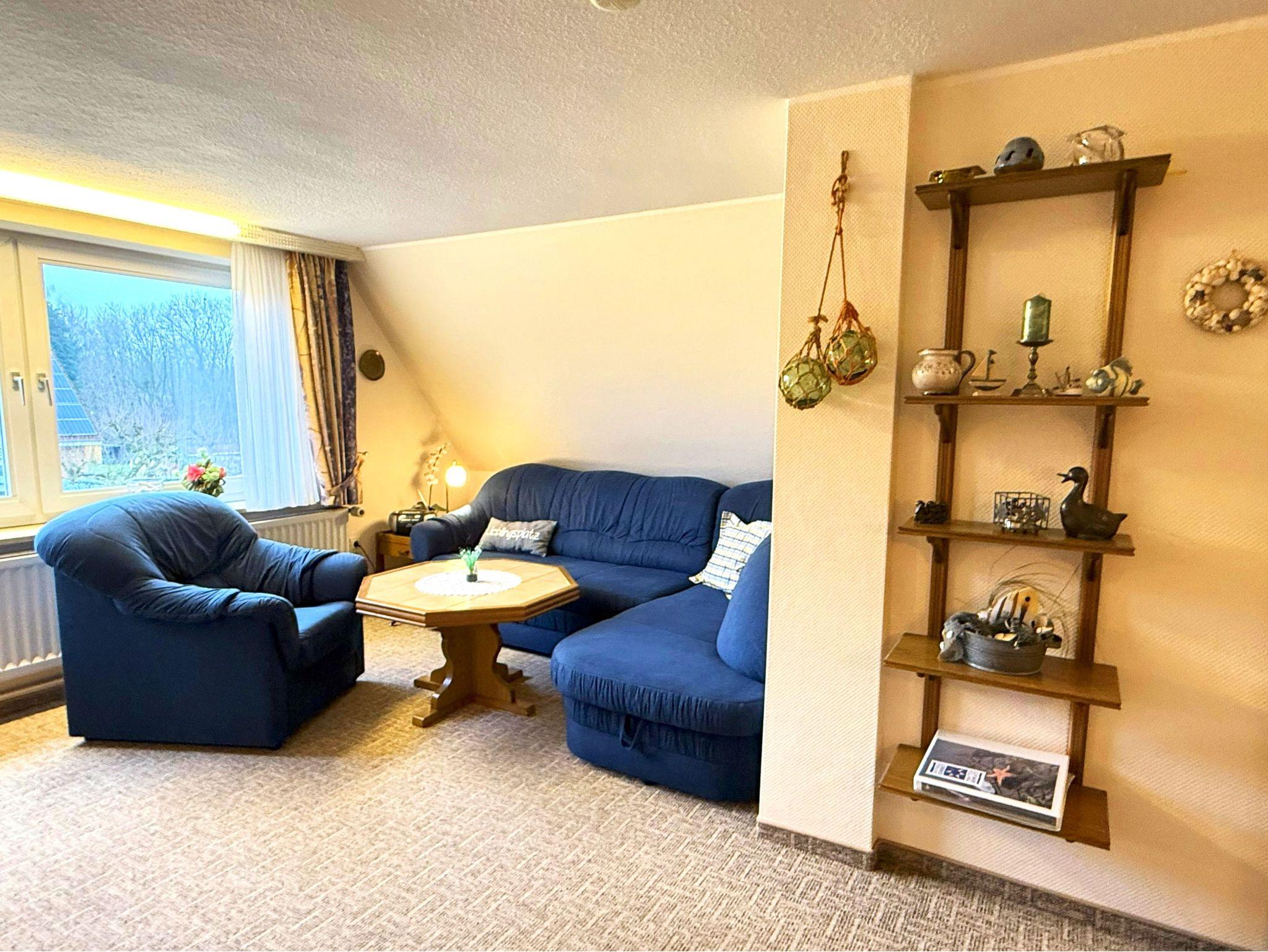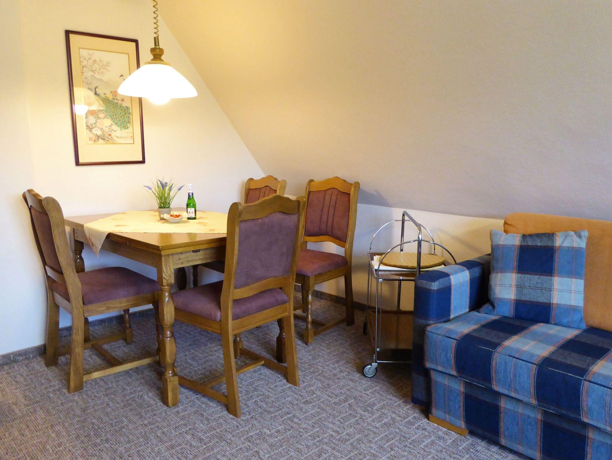 Die Wohnung befindet sich in der 1. Etage unseres Hauses. Sie besteht aus 2 Zimmern, Küche, Duschbad mit WC und Flur. Die Wohnräume sind mit Teppichboden ausgelegt und gemütlich eingerichtet. Eine Terrasse befindet sich im Garten.