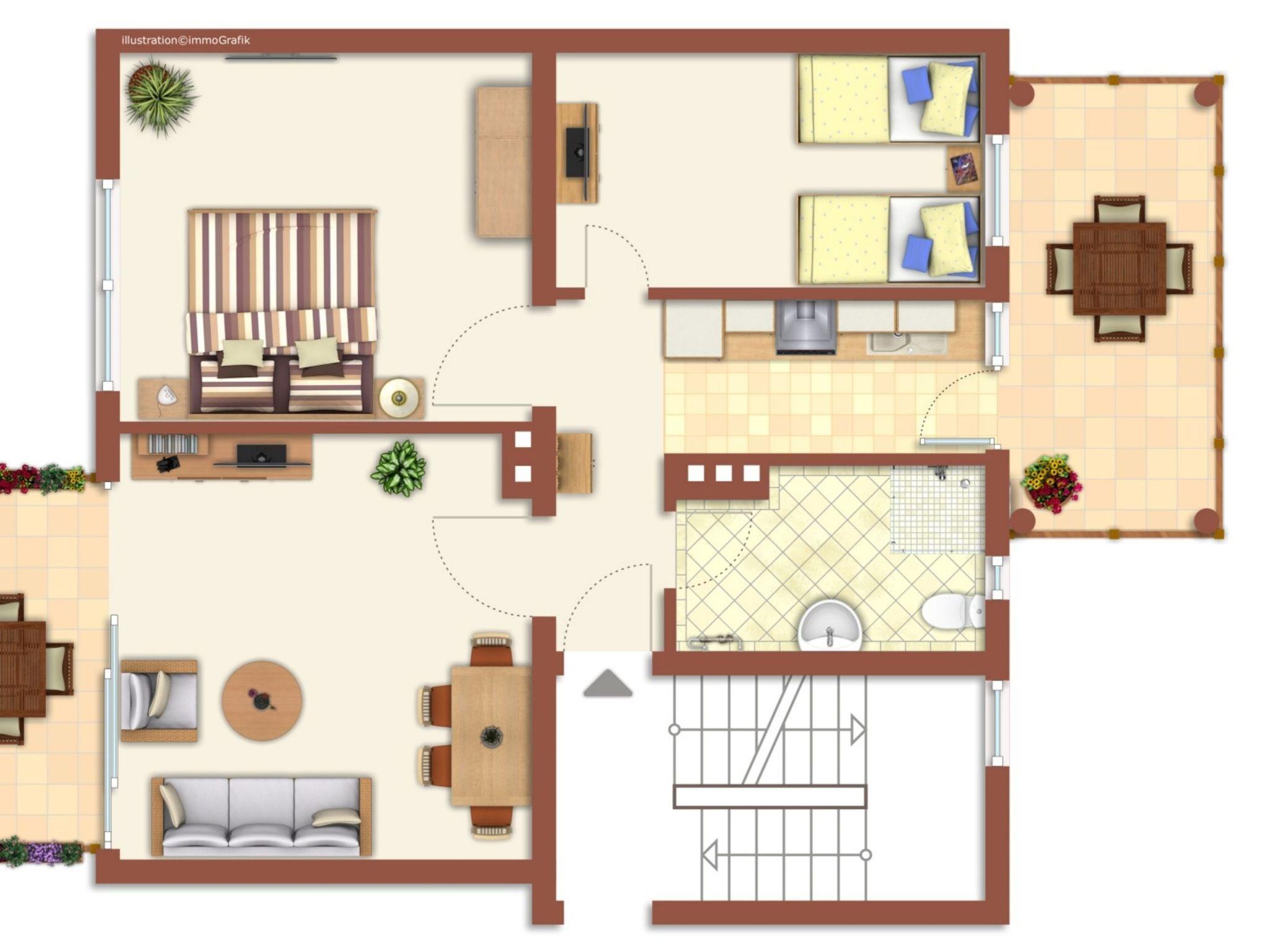 Beim Aufwachen direkt vom Bett auf die Ostsee blicken, vom Sofa oder Esstisch die Schiffe auf der Ostsee beobachten, vom Balkon das Leben im Strandzentrum genießen. Unsere 3-Zimmer-Ferienwohnung Strandblick in Scharbeutz bietet Familien mit max. 4 Erwachsenen und 1 Kleinkind (0-3 Jahre) viel Komfort und Platz. Die 62m² Ferienwohnung im 1. OG verfügt über 1 großes Wohnzimmer mit Essbereich mit Blick auf die Ostsee, 2 Schlafzimmer mit TV, 1 Duschbad, 1 Küche, 2 Balkone Meerblick/Abendsonne, WLAN usw. Ein Parkplatz sowie eine großzügige Fahrradgarage befindet sich direkt am Haus. Zusätzlich steht Ihnen eine Waschmaschine und ein Wäschetrockner im Keller im Hauswirtschaftsraum zur Verfügung. Vom ersten Balkon und vom Wohnzimmer blicken Sie über die Fußgängerzone direkt zum Strand bzw. zur Seebrücke von Scharbeutz. Vom zweiten Balkon blicken Sie in den sonnigen Westen in Richtung Kurpark und können von dort in aller Ruhe die Abendsonne genießen. Sobald Sie das Haus verlassen befinden Sie sich mitten in der Fußgängerzone vom Scharbeutzer Strandzentrum. Hier finden Sie Restaurants, Cafés, Geschäfte, Spielplätze, den Kurpark und vieles mehr. Scharbeutz bietet alles für einen perfekten Urlaub. Der feine Sandstrand lädt zum Entspannen und Sonnenbaden ein, während die frische Meeresbriese für Erholung sorgt. Zahlreiche Rad-und Wanderwege bieten die Möglichkeit, die Umgebung zu erkunden. Ob Wassersport, Shopping oder einfach die Seele baumeln lassen ? Scharbeutz ist der ideale Ort, um dem Alltag zu entfliehen und unvergessliche Momente zu genießen.