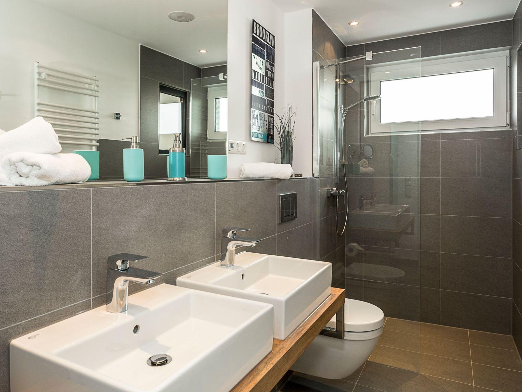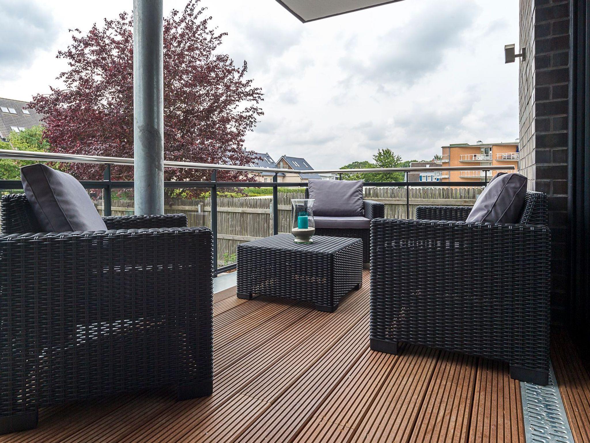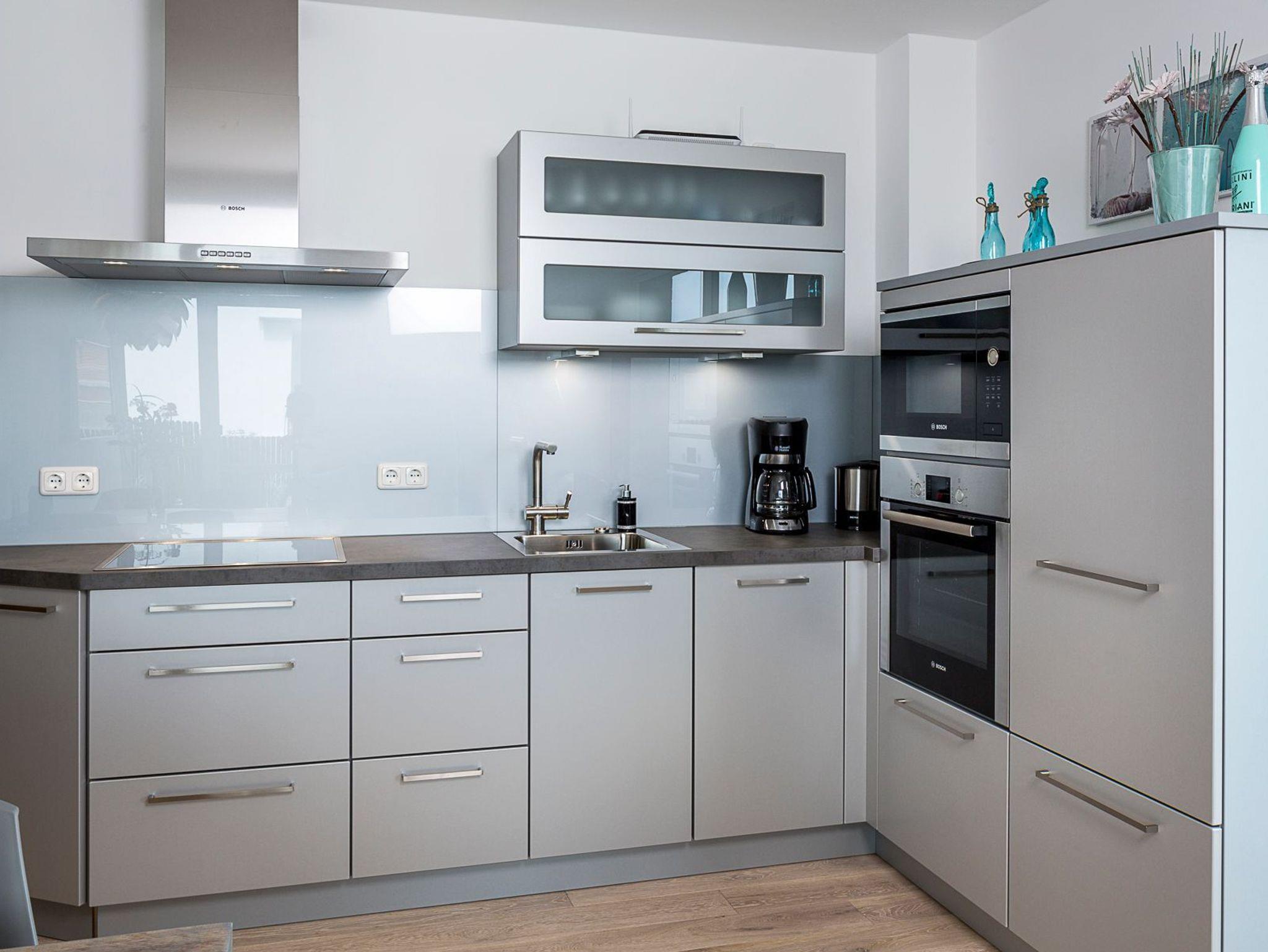 Der moderne Wohn-Essbereich bietet Ihnen eine gemütliche Sofaecke sowie einen großen Esstisch mit Stühlen für gesellige Stunden. Auf dem angrenzenden Südwestbalkon sowie der Terrasse genießen Sie die Mittags- bis Abendsonne. Neben einem Flach-TV und einer Stereoanlage steht Ihnen selbstverständlich kostenloses WLAN zur Verfügung. Die moderne Küche ist komplett ausgestattet und lässt keine Wünsche offen. Das Bad verfügt über eine bodentiefe Dusche, zwei Waschtische und einen Handtuchheizkörper sowie ein integriertes Bad-Radio. Die beiden Schlafzimmer sind mit Boxspringbetten (1,80x2,00m), einem Kleiderschrank sowie mit je einem Flach-TV ausgestattet. Alle Fenster haben elektrische Außenrollläden.