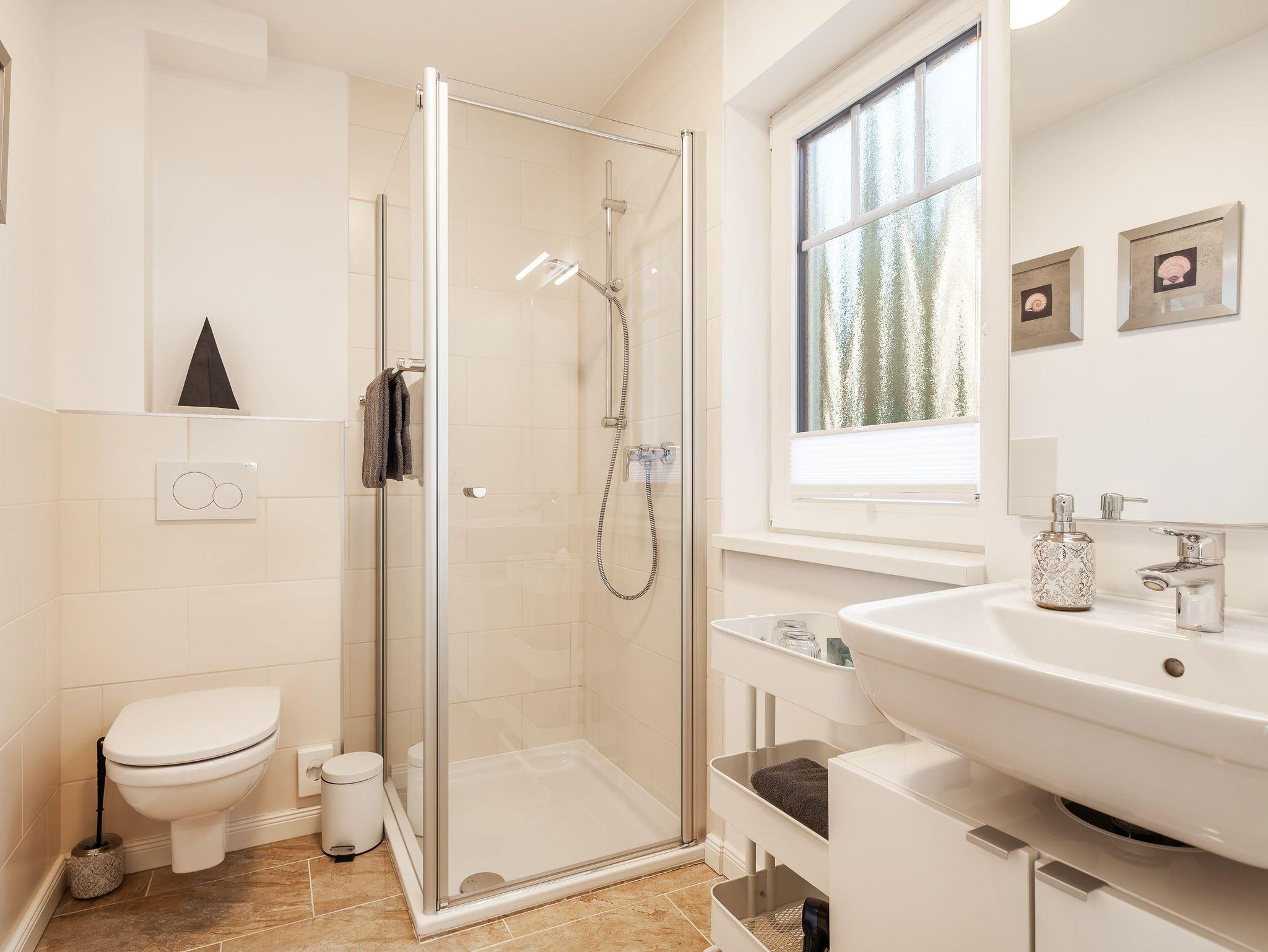 Die geräumigen Duschbäder verfügen über eine komfortable Dusche sowie einen großen Schrank für persönliche Gegenstände.