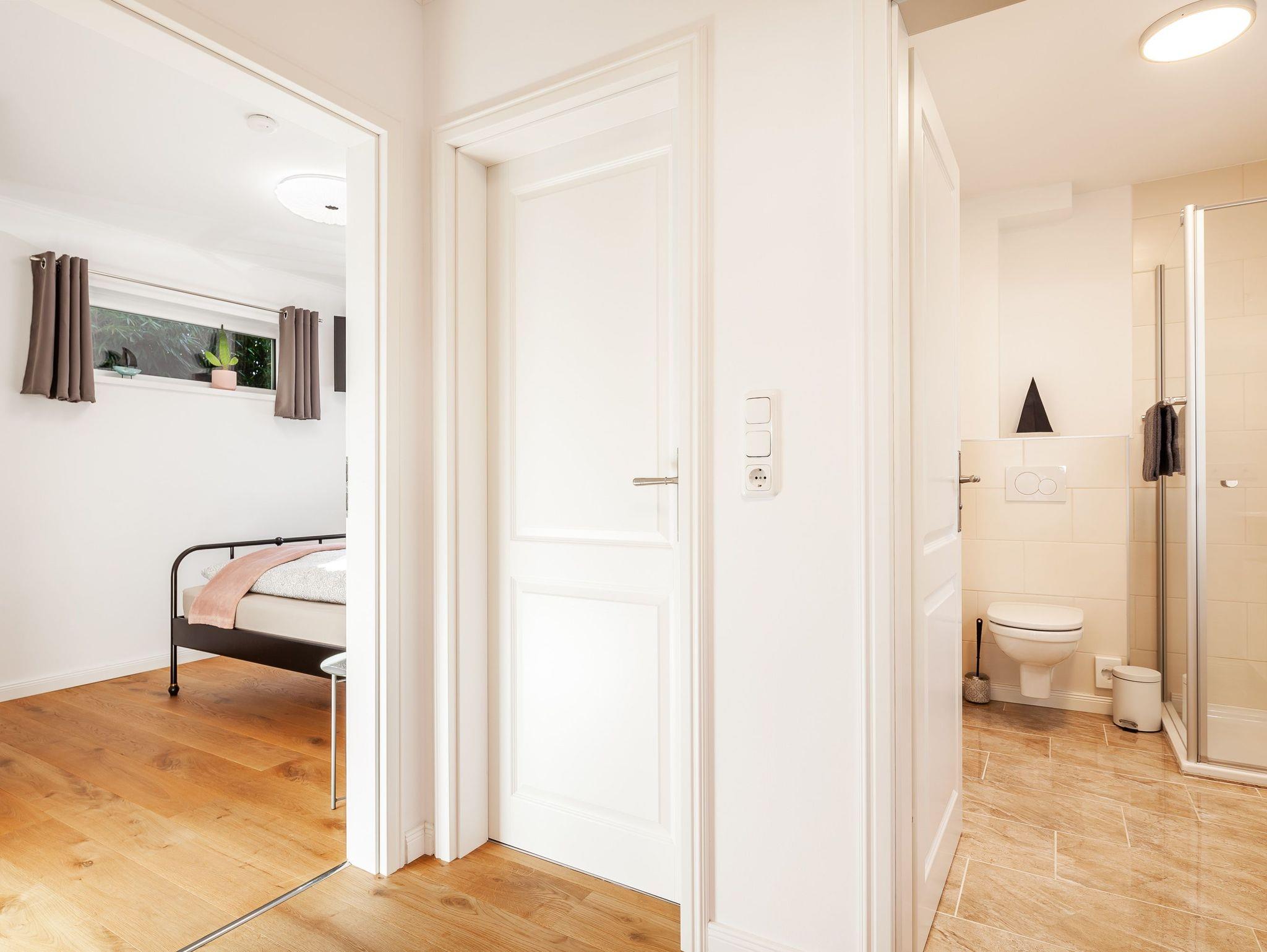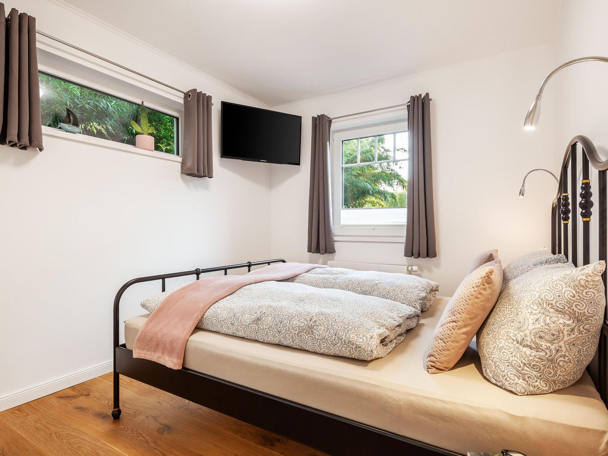 Die Schlafzimmer sind darauf ausgelegt, erholsamen Schlaf zu ermöglichen. Schalldichte Fenster, umfassende Verdunklungsmöglichkeiten und eine natürliche Bauweise sorgen für ein angenehmes Raumklima ? ganz ohne Klimaanlage.