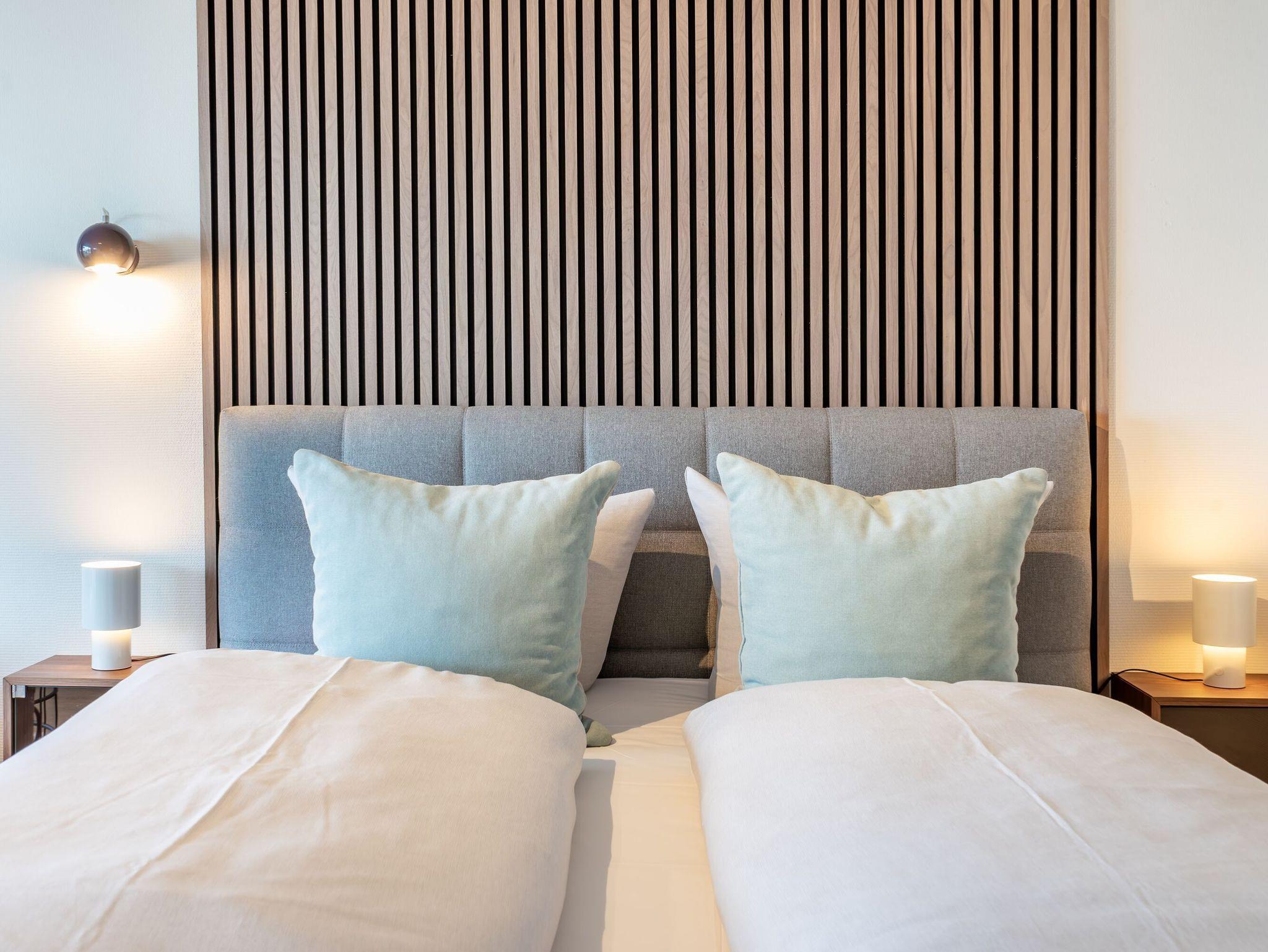 Moderne 1-Zimmerwohnung in Scharbeutz mit Terrasse, beheiztem Pool und atemberaubendem Meerblick.