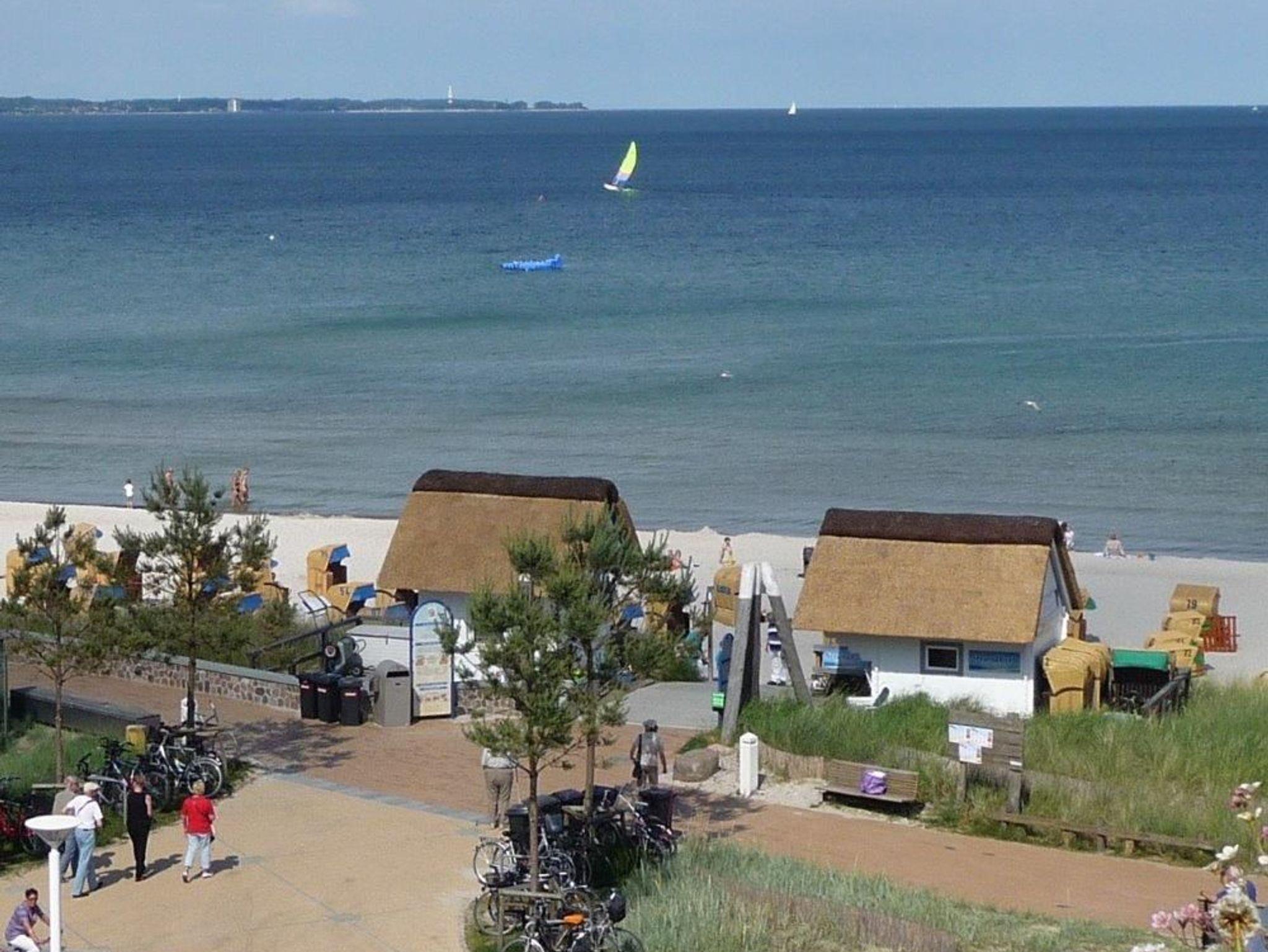 Vom Kurpark gelangt man zum Ostseeplatz, zu der Promenade, der Dünenlandschaft, dem Strand und der flach abfallenden Ostsee. Von der Wohnanlage aus ist der Strandzugang keine 50m entfernt. Der Strand und der Ostseegrund sind feinsandig und steinfrei, das Badewasser hat gute, überwachte Wasserqualität und ist gesundheitlich unbedenklich.