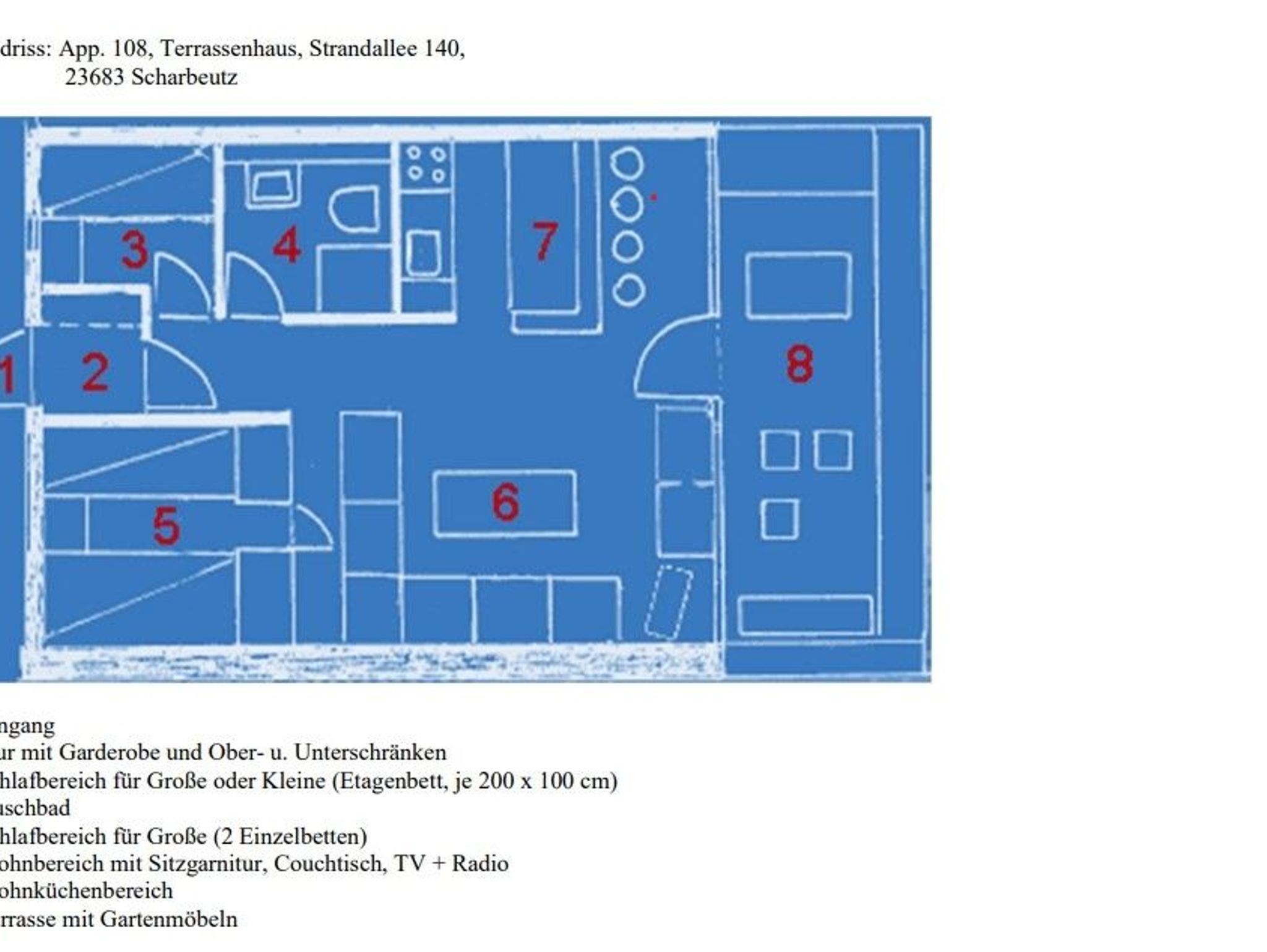Das Appartement befindet sich in Scharbeutz und liegt im 1. OG.