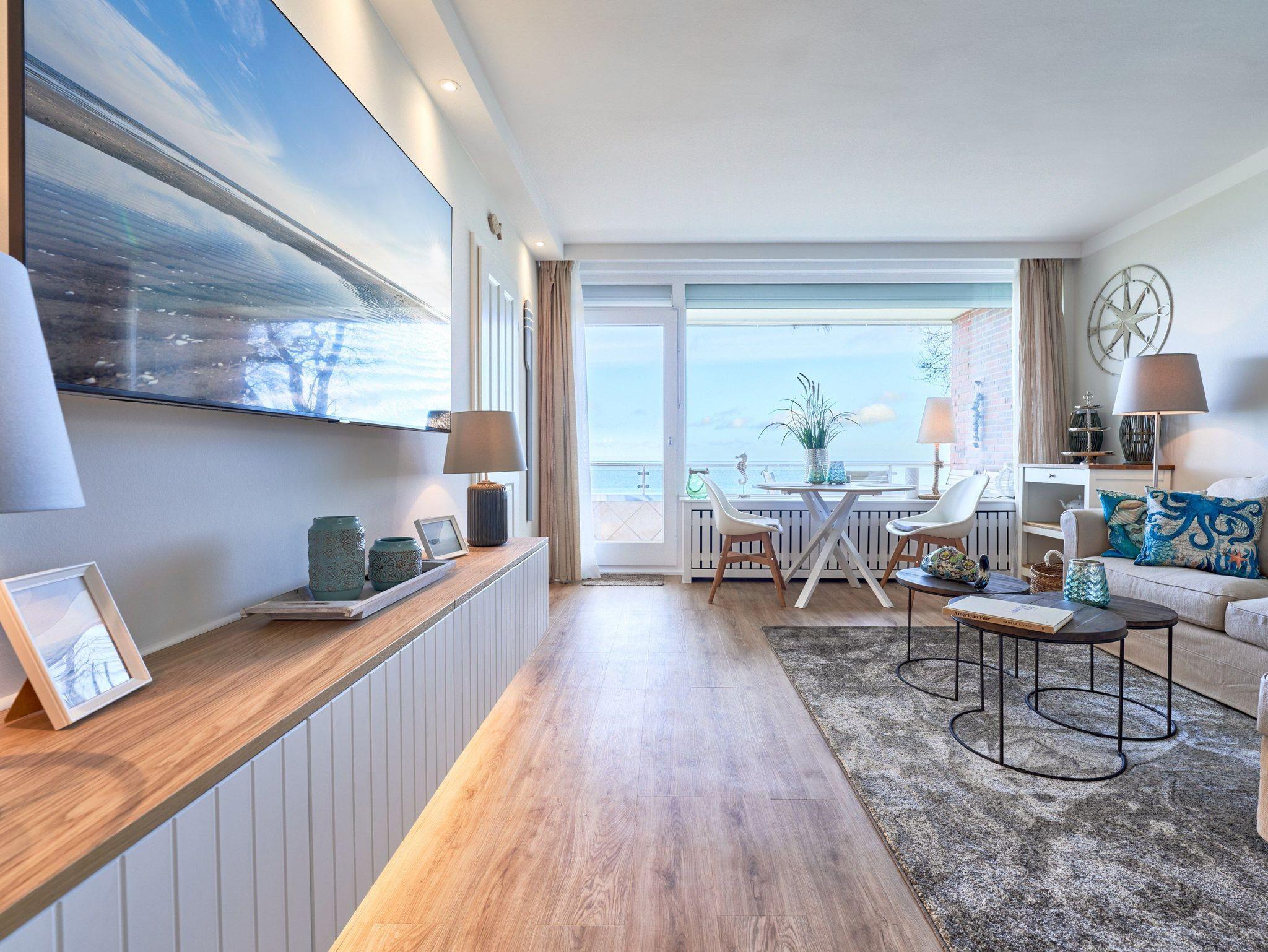 Bereits im Flur können Sie schon auf die Ostsee blicken und weiter … Aus beiden Räumen haben Sie Ostseeblick! In dieser traumhaften Wohnung werden Sie sich gleich wohlfühlen. Das Wohnzimmer bietet Ihnen eine angenehme Atmosphäre. Lichtkonzept / dimmbar für jeden Geschmack. Hochleistungs-WLAN-Flat mit 250 MBit/s, TV UHD 65 Zoll, Magenta TV inkl.