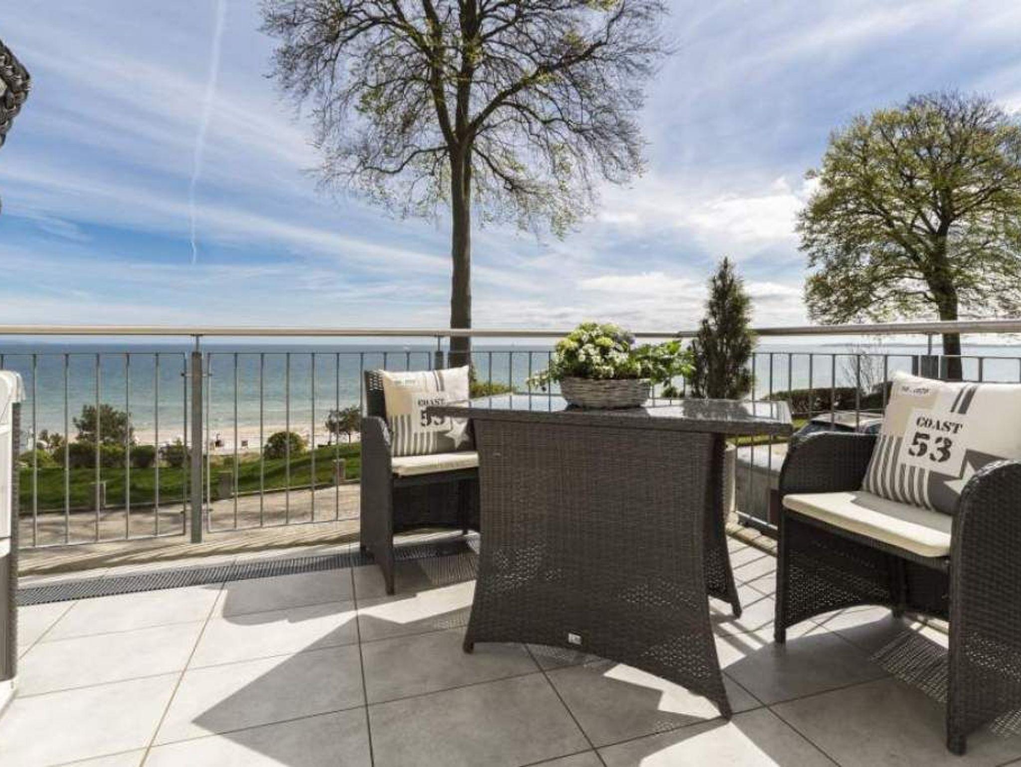 Helle 3-Zimmer-Ferienwohnung in Scharbeutz mit traumhaftem Ostseeblick und zwei Balkonen, ideal für einen entspannten Urlaub direkt an der Lübecker Bucht.
