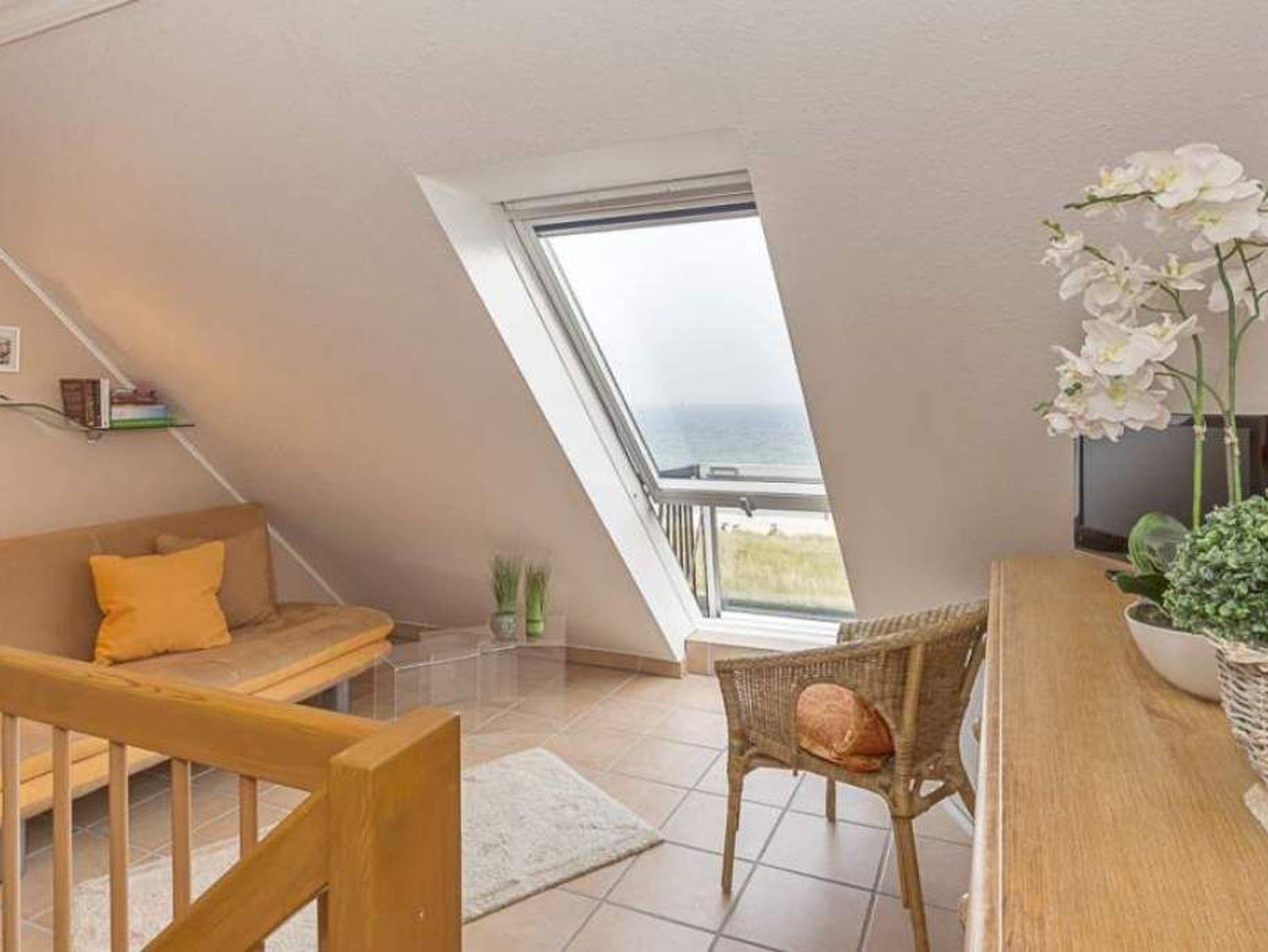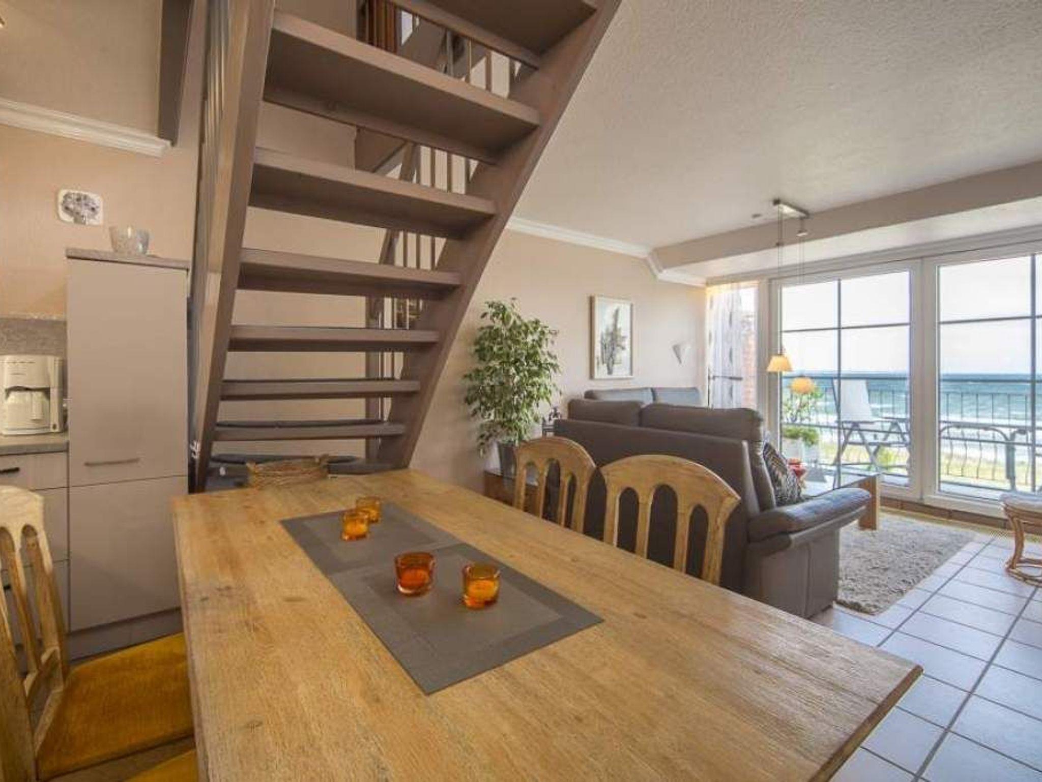 Windrose - 3,5-Zimmer-Ferienwohnungca. 80 m², über 2 Ebenen, zwei Schlafzimmer, Galeriezimmer, 2 Balkone, zwei Bäder und ein PKW-Stellplatz für bis zu 5 Personen.