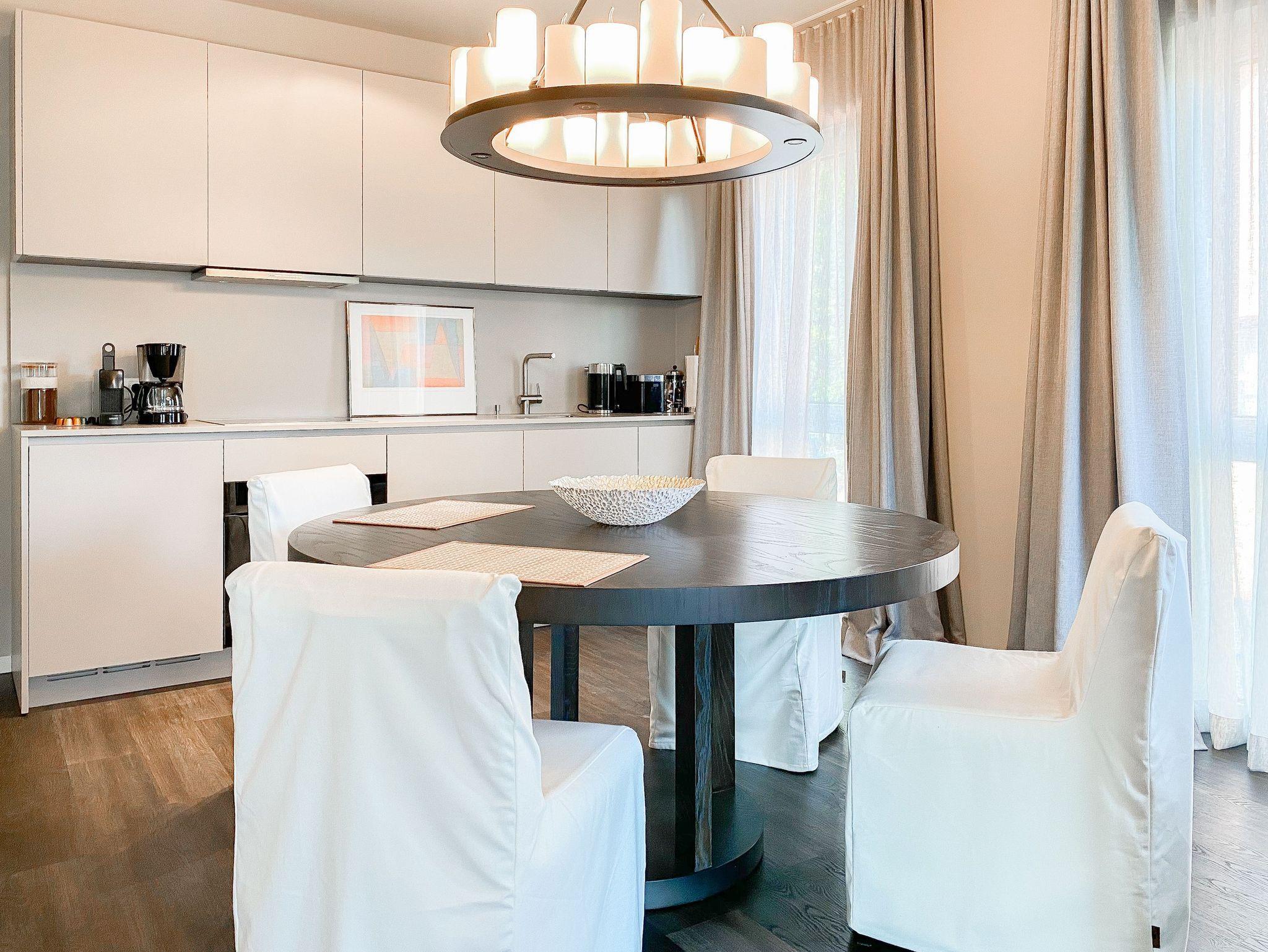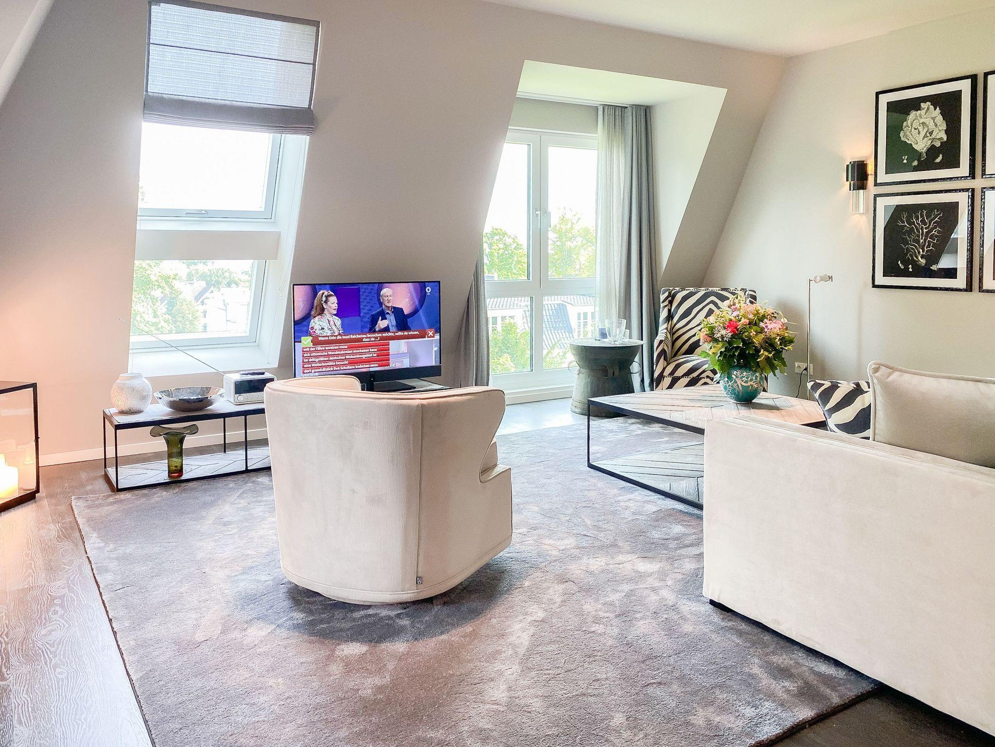 Die äußerst hochwertige Ausstattung und stilvolle Einrichtung dieser Wohnung bietet zeitgemäßen Luxus auf fast 70 qm Wohnfläche für 2 Personen. Für Wellness Liebhaber wurde die Wohnung mit einer Infrarot Wärmekabine ausgestattet, besonders angenehm bei Verspannungen, zur Entschlackung oder einfach nur zur Entspannung. Mittelpunkt der Wohnung bildet der großzügige Wohnbereich mit wunderschönem Blick auf die Ostsee, der mit einem gemütlichen Sofa, Lesesessel und TV ausgestattet ist. Der anschließende Essbereich mit offener Designküche bietet ausreichend Platz für 4 Personen und ein Bioetanolkamin sorgt für eine gemütliche Atmosphäre. Das Schlafzimmer verfügt über ein Boxspringdoppelbett (180x200), Verdunkelungsvorhänge, TV und einen vorgelagerten Balkon in Südausrichtung, der mit Gartenmöbeln und einem Strandkorb ausgestattet ist. Im Flur befindet sich ein großer Einbauschrank mit ausreichend Stauraum für Ihre Urlaubsgarderobe. Das Bad ist hochwertig und modern mit Walk In Dusche und integriertem Waschtrockner. Kostenloser Internetzugang ist über WLAN gegeben.