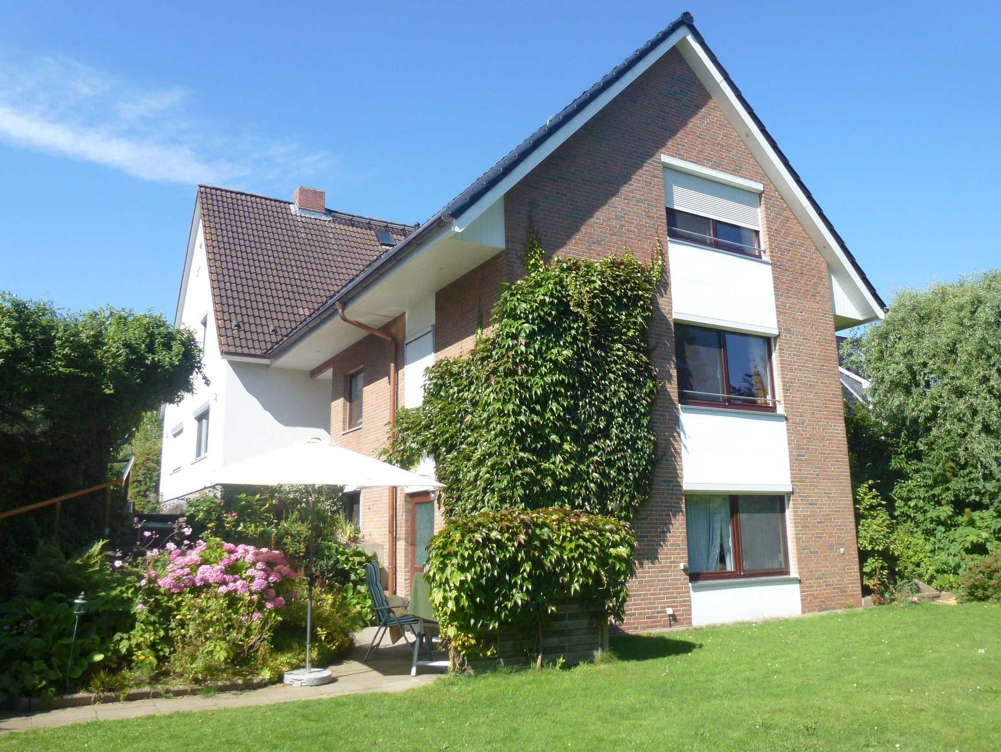 Unser großer Garten mit Liegewiese, Terrasse, Trampolin und Strandkorb lädt zum Relaxen, Spielen, Klönen, Tischtennis oder Grillen ein.