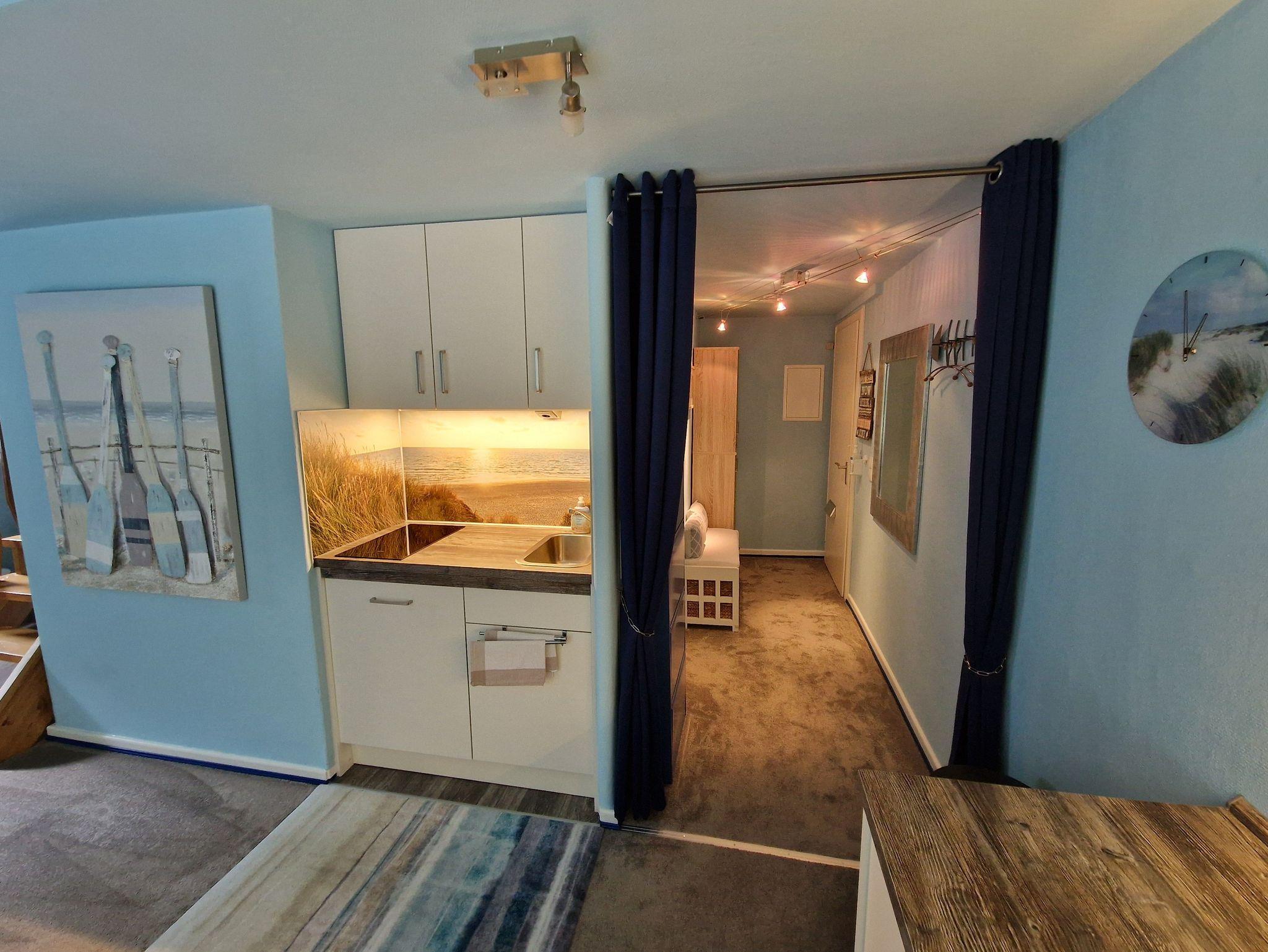Das 2-Zimmer Appartment ist für bis zu 4 Personen ausgestattet. Es ist 47 m² groß und verfügt über einen kombinierten Wohn- und Schlafraum mit einer offenen Küchenzeile. Über eine Treppe gelangt man auf die Galerie, wo sich ein separates Schlafzimmer für 2 Personen befindet. Die Wohnung ist geschmackvoll und modern eingerichtet. Sie verfügt über eine gemütliche Sitzecke, Duschbad, Pantryküche mit 2 Herdplatten und Backofen und einem Esstisch. Selbstverständlich stehen unseren Gästen ein Farbfernseher mit Kabelanschluss und DVD-Player, eine Musikanlage mit CD-Spieler und ein Radiowecker zur Verfügung.