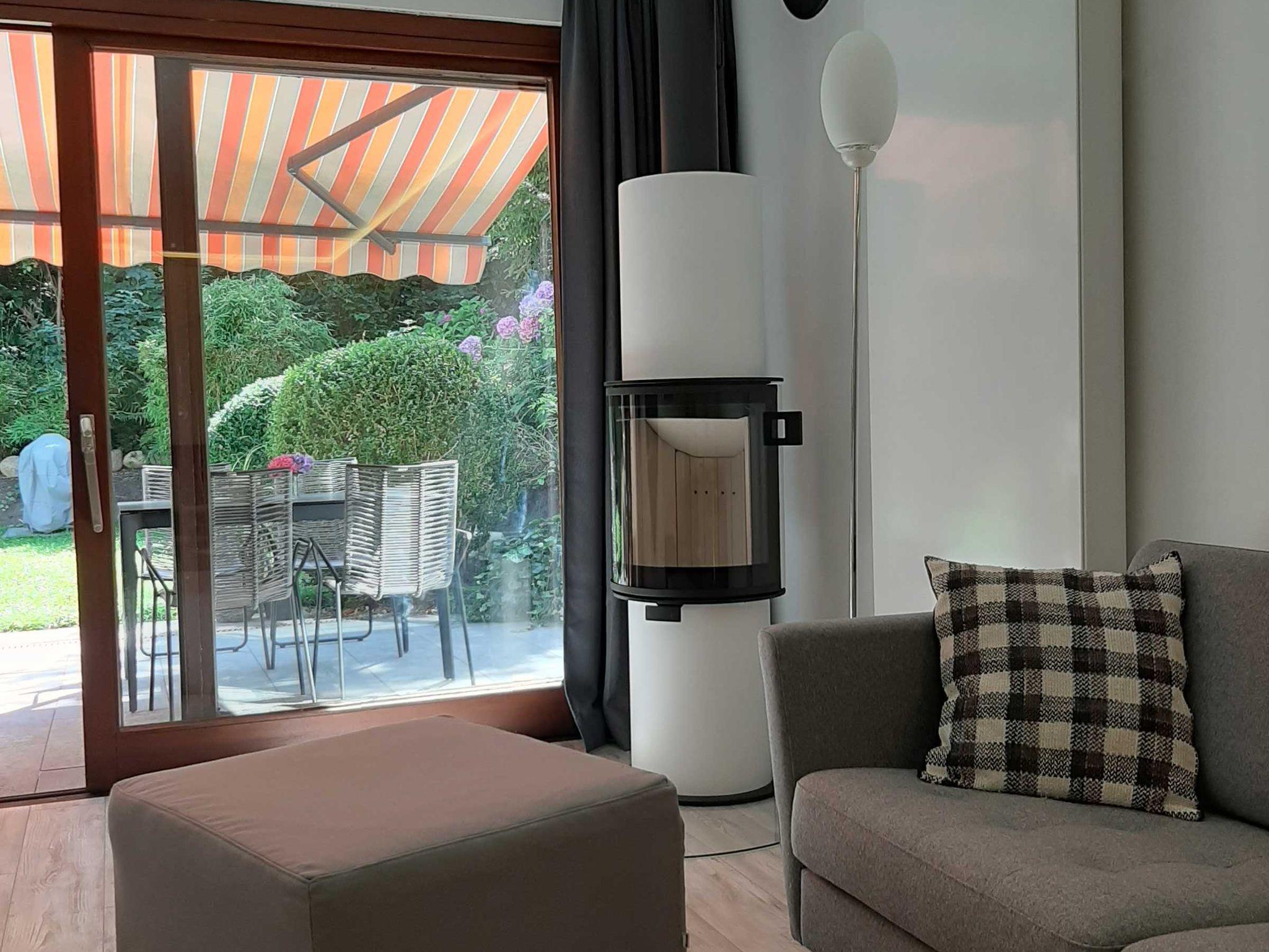 Schöne 2-Zimmer Ferienwohnung für max. 4 Personen (2 Erwachsene und 2 Kinder/ Jugendliche) mit einer Wohnfläche von ca. 50m². Skandinavischer Stil (BO-Concept), Couch, Esstisch, ein B&O Flat-TV mit DVD-Player, Kaminofen, Terrasse mit Garten. Hunde sind erlaubt und wohnen bei uns kostenfrei. Das Schlafzimmer verfügt über ein hochwertiges Boxspringbett (180 x 200 cm). Weitere Möglichkeiten: es können sowohl im Schlafzimmer ein oder im Wohnzimmer zwei extra Klappbetten (70 x 200 cm) für eine 3. und 4. Person (Kind/Jugendliche(r) aufgestellt werden. Kleiderschrank und B&O Flat TV. Ein Duschbadezimmer mit WC und Haartrockner befindet sich im Innenbereich. Garten mit Grill, Terrasse mit Strandkorb. Küche m. Wasch- und Spülmaschine. Auf Wunsch kann eine Mikrowelle bereitgestellt werden. Ein Kinderreisebett und ein Hochstuhl vorhanden.