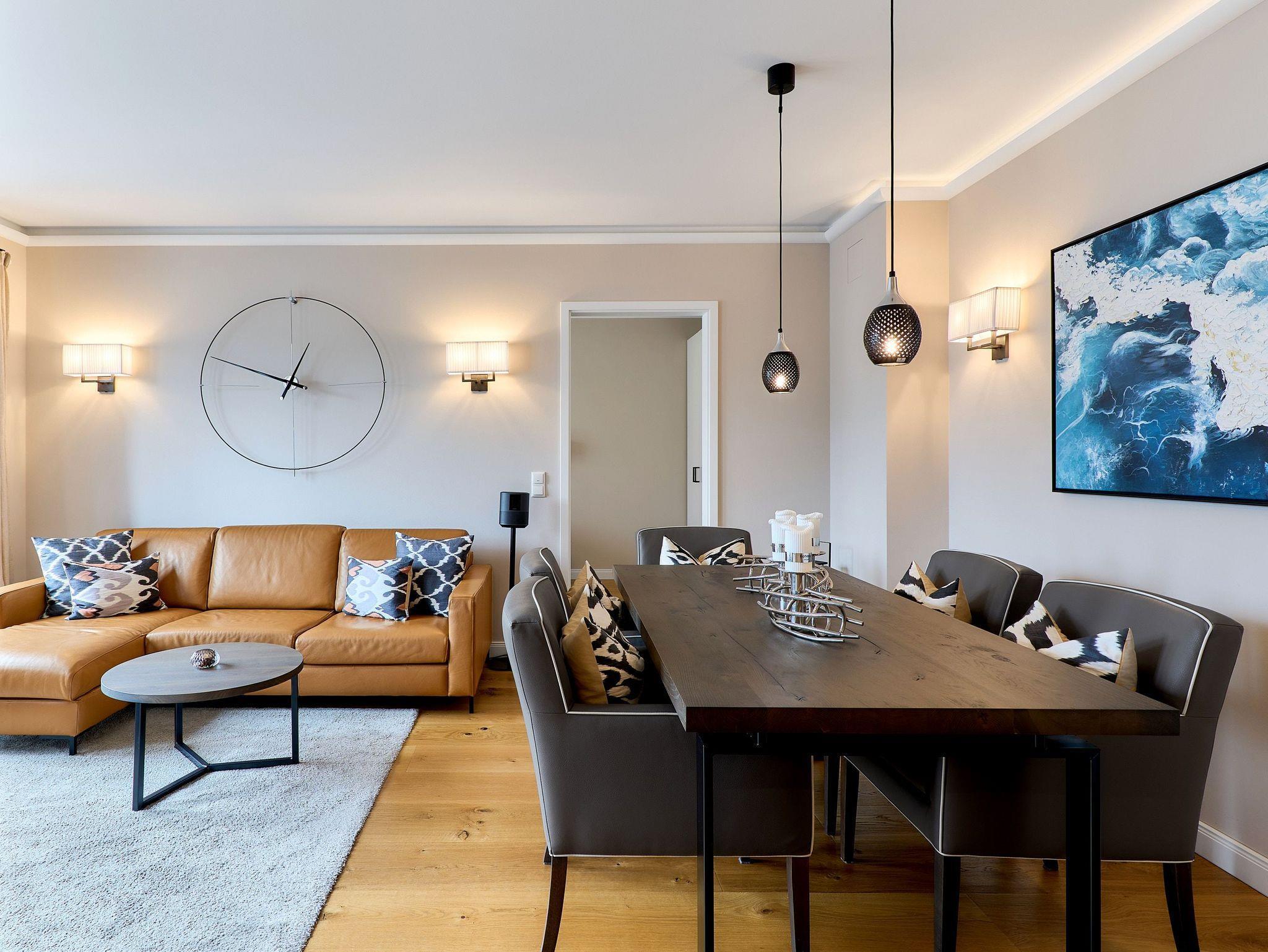 WLAN, Fußbodenheizung. Bodentiefe Fenster. Parkettfußboden. Elektrische Außenrollläden. Video-Türsprechanlage. Kfz-Außenstellplatz. Auf dem Balkon stehen Ihnen Tisch und Stühle zur Verfügung. Der wohnungseigene Keller kann zum Abstellen der Koffer genutzt werden. Wohnungsbezogene Waschmaschine und Trockner im Keller.