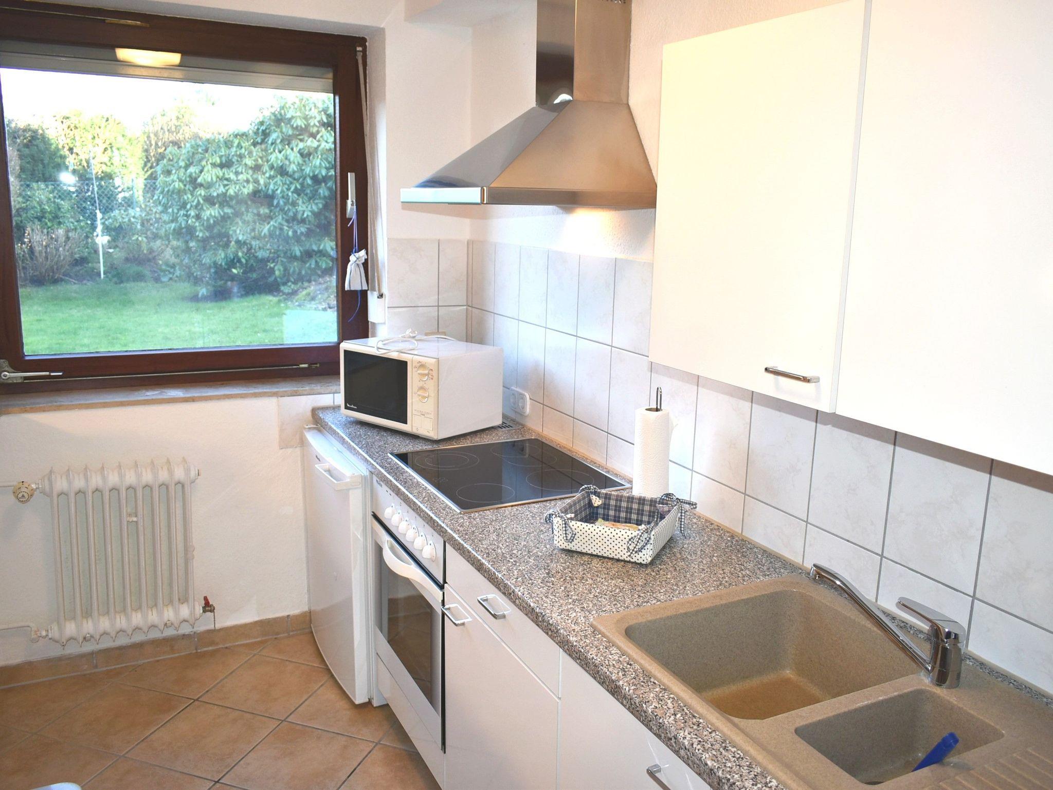 Wohnzimmer: 3 Stühle, 2 Tischlampen, 4 Plattenherd mit Ceranfeld und Backofen, Anrichte, Couchtisch, Dunstabzugshaube, Esstisch, Flachbildschirm, Geschirr, Kaffeemaschine, Kochtöpfe, Küchenzeile, Kühlschrank, Mikrowelle, Sat-TV, Schlafcouch, Spülmaschine, Staubsauger, Stehlampe, Stereoanlage mit CD-Player, Tischlampe, Toaster, TV-Tisch Wasserkocher