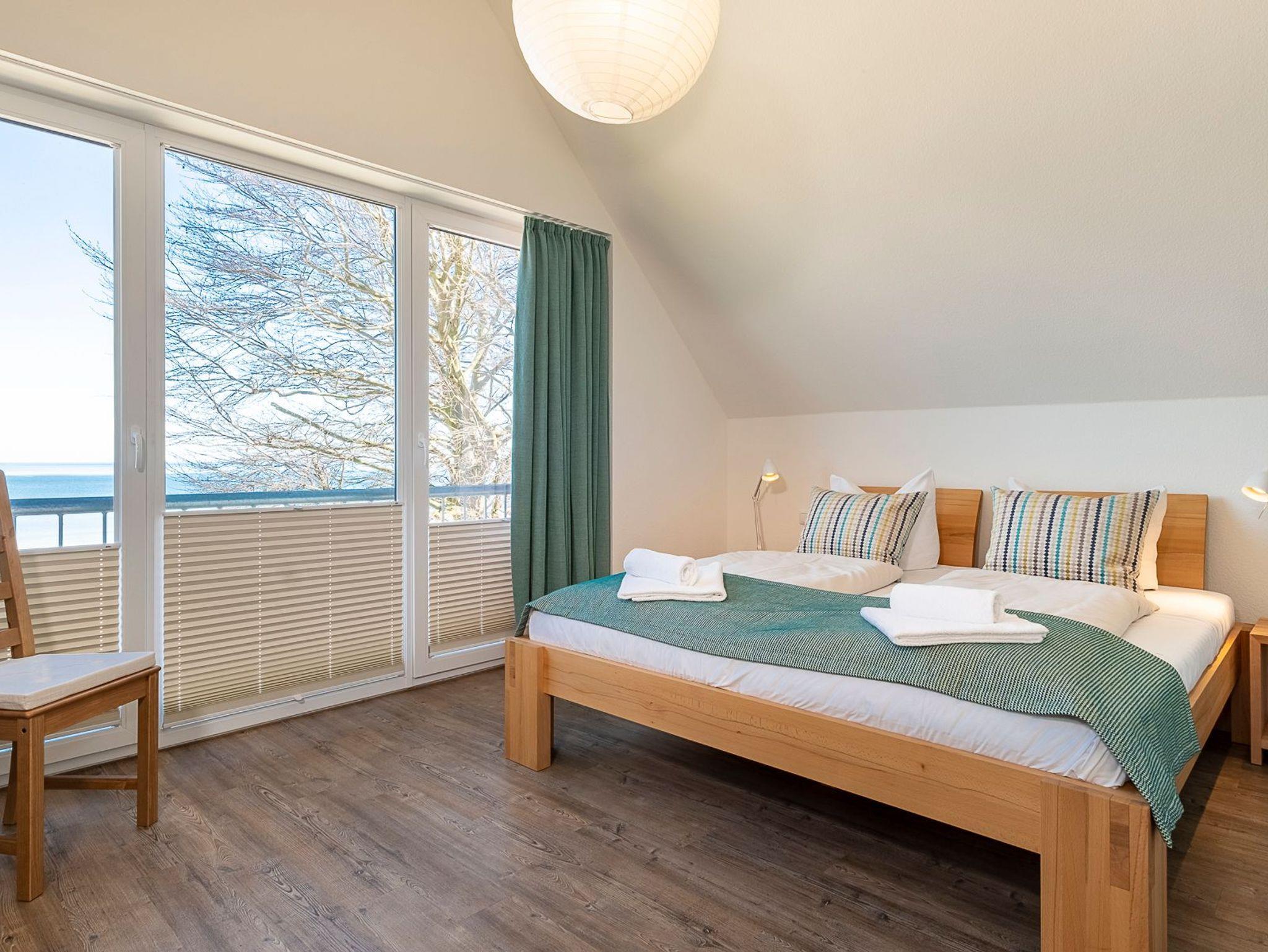 Sehr schöne 3-Zimmer-Ferienwohnung, ca. 72 m², für 3 + 1 Personen, toller, weiter Ostseeblick. Die Wohnung geht über zwei Ebenen. Balkon, Tageslichtbad, Gäste-WC, PKW-Stellplatz, Fahrradschuppen