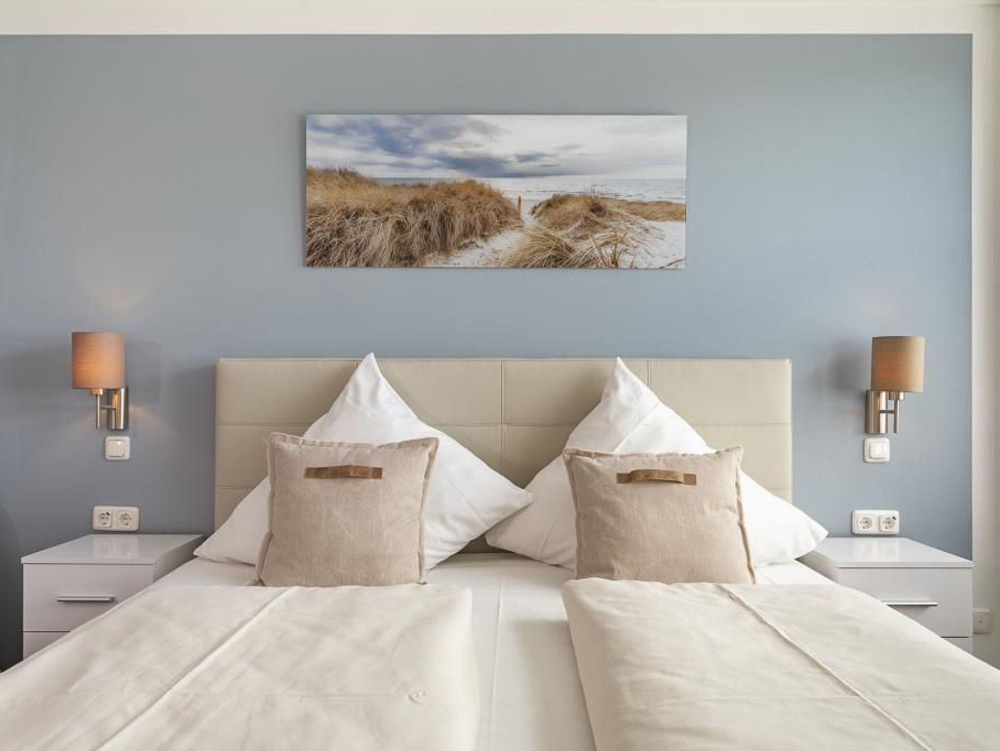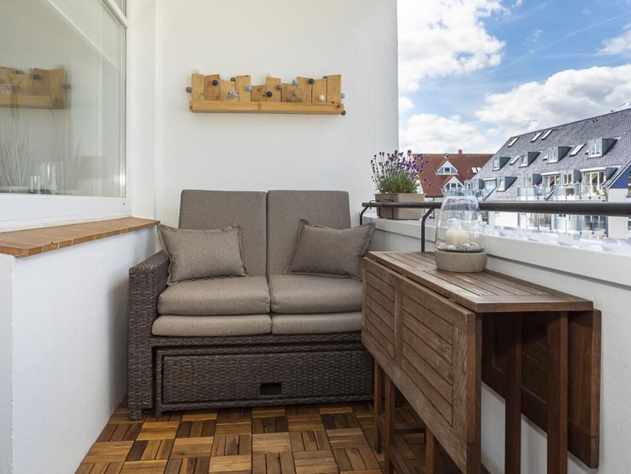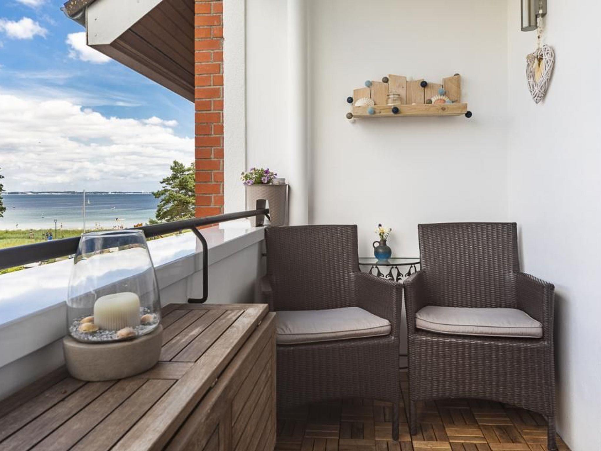 Helle 2-Zimmer-Ferienwohnung mit seitlichem Ostseeblick, 50 m vom Strand in Scharbeutz, mit Balkon und kostenlosem WLAN.