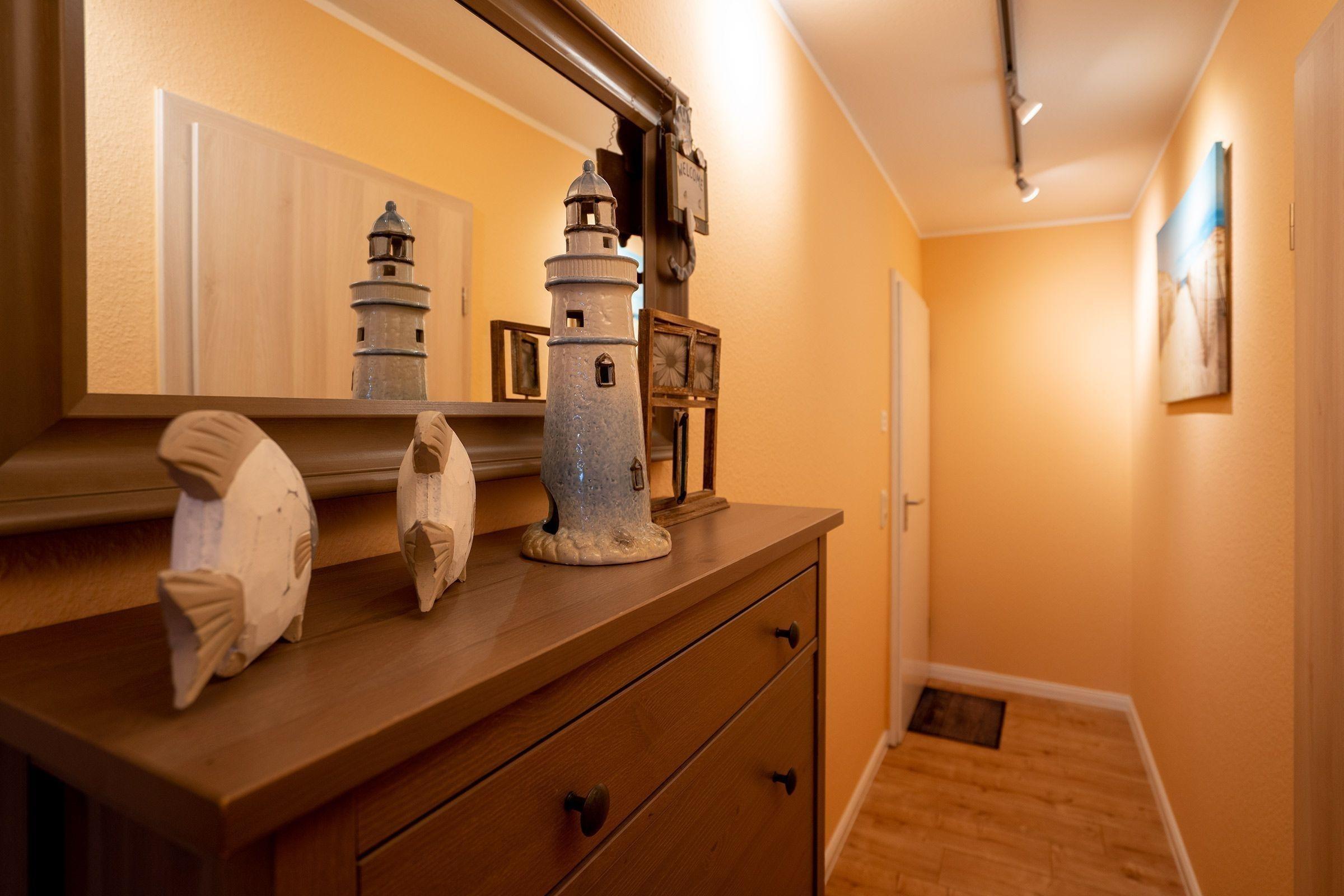 Die Anreise gestaltet sich unkompliziert, ein PKW-Abstellplatz ist direkt an der Unterkunft verfügbar. Die Wohnung ist über einen ebenerdigen Eingangsbereich erreichbar und erstreckt sich über zwei Ebenen, was eine komfortable Raumnutzung ermöglicht. In der Umgebung finden sich zudem ausgewiesene Strandabschnitte, die für Hunde zugänglich sind, insbesondere von Anfang Oktober bis Ende März.