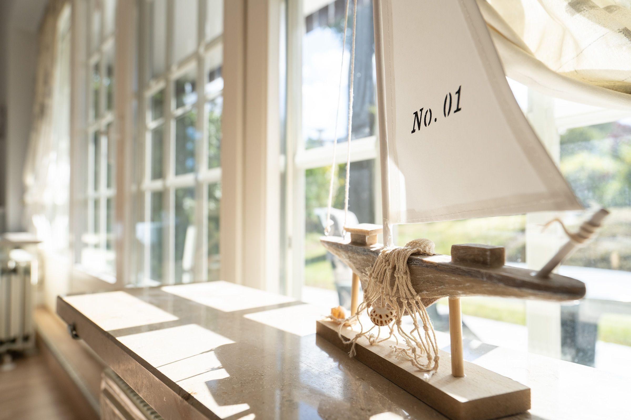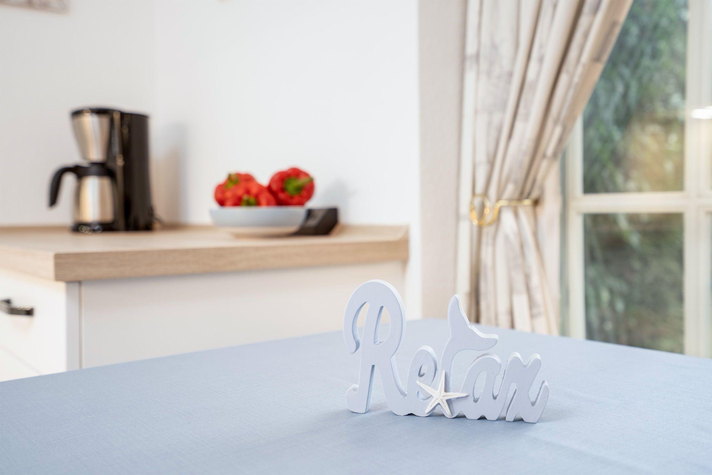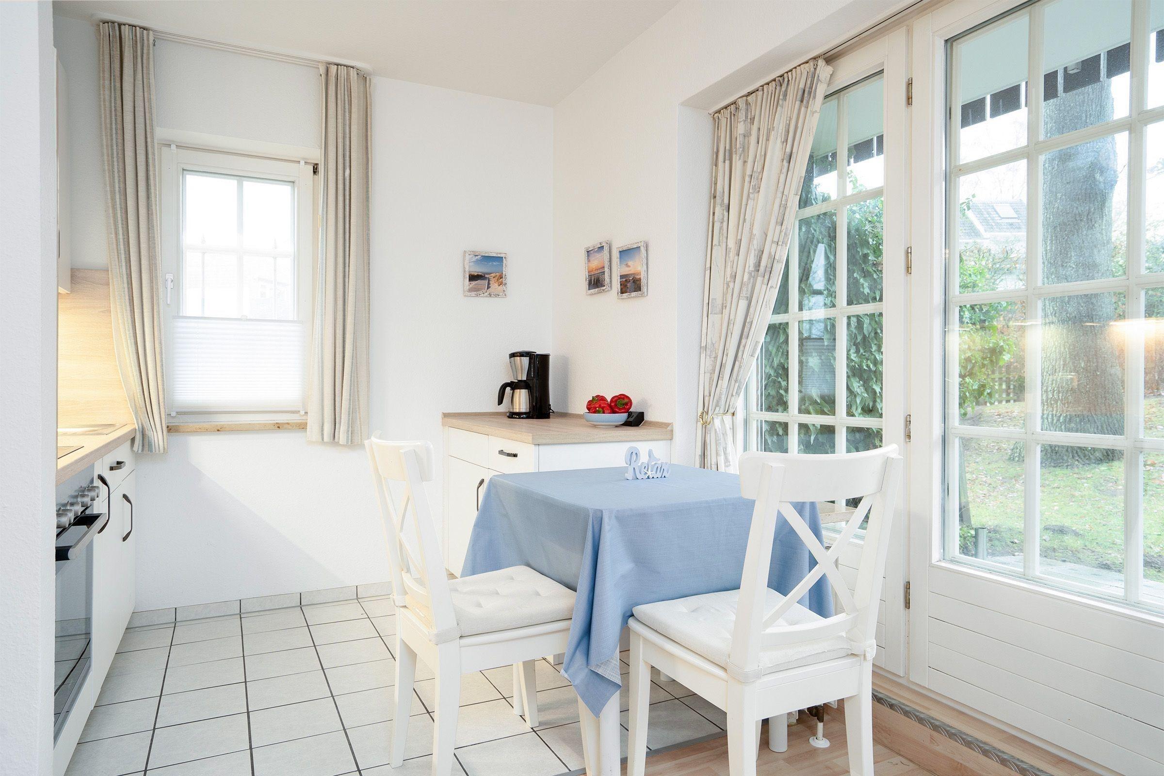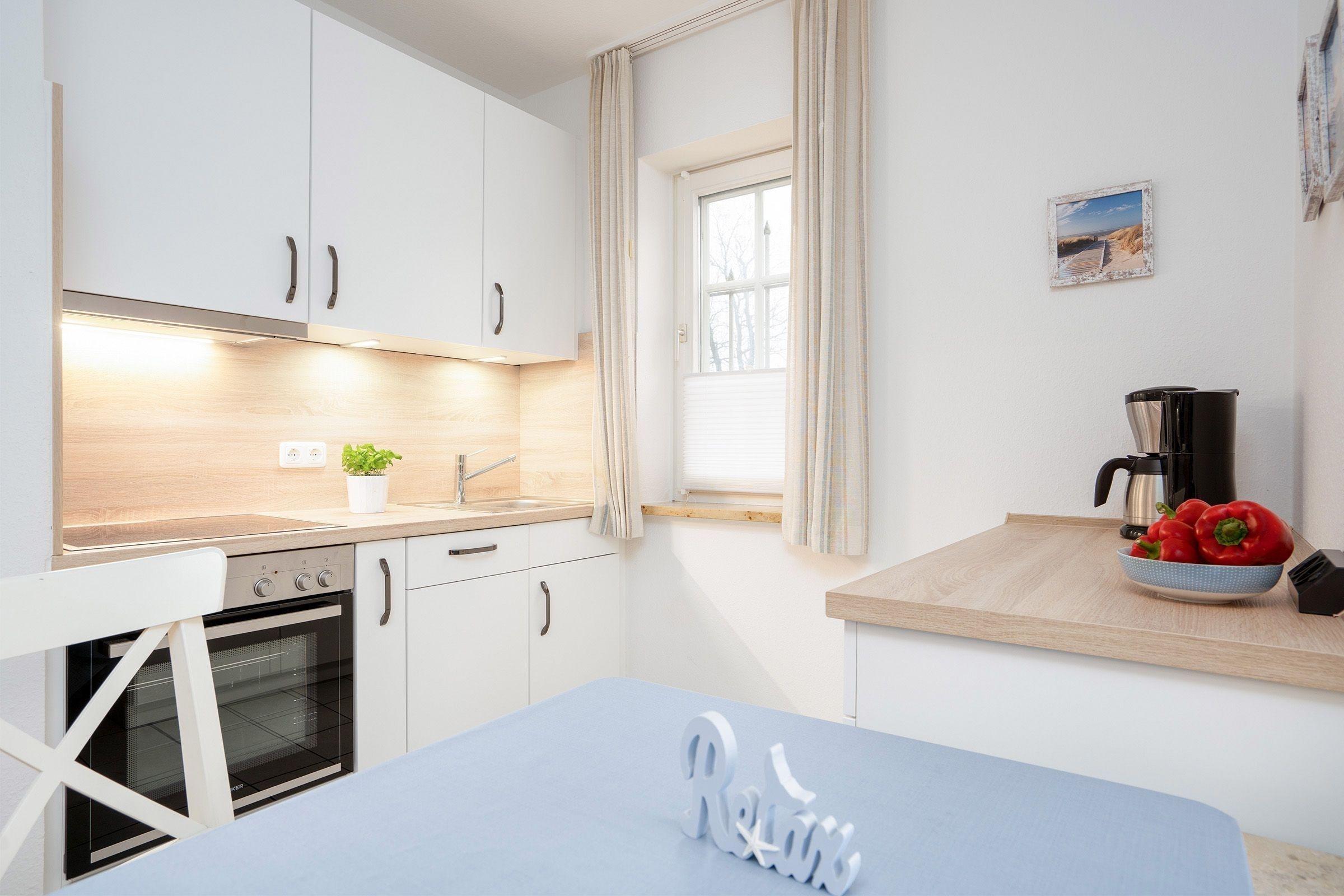 Die strandnahe Ferienwohnung bietet auf etwa 53 qm Platz für maximal 2 Erwachsene und 1 Kind. Der einladende Wohnraum ist mit einem Schlafsofa, Couchtisch und TV ausgestattet und schafft eine gemütliche Atmosphäre. Hier ist der Zugang zur sonnigen Terrasse, die durch Hecken geschützt ist. Die offene Küche verfügt über eine Komplettausstattung, einschließlich Geschirr, Backofen, Wasserkocher, Kaffeemaschine und Spülmaschine, sowie sämtlichen benötigten Kochutensilien. Das Schlafzimmer beinhaltet ein Doppelbett mit zwei getrennten Matratzen (je 0,80x2,00) und einen Kleiderschrank für ausreichend Stauraum. Das helle Badezimmer mit großen Fenstern enthält eine Dusche, einen Waschtisch und ein WC. Die Wohnung ist eine Nichtraucherwohnung, kleine Hunde sind auf Anfrage erlaubt. Ein kostenloser PKW-Stellplatz befindet sich direkt am Haus.