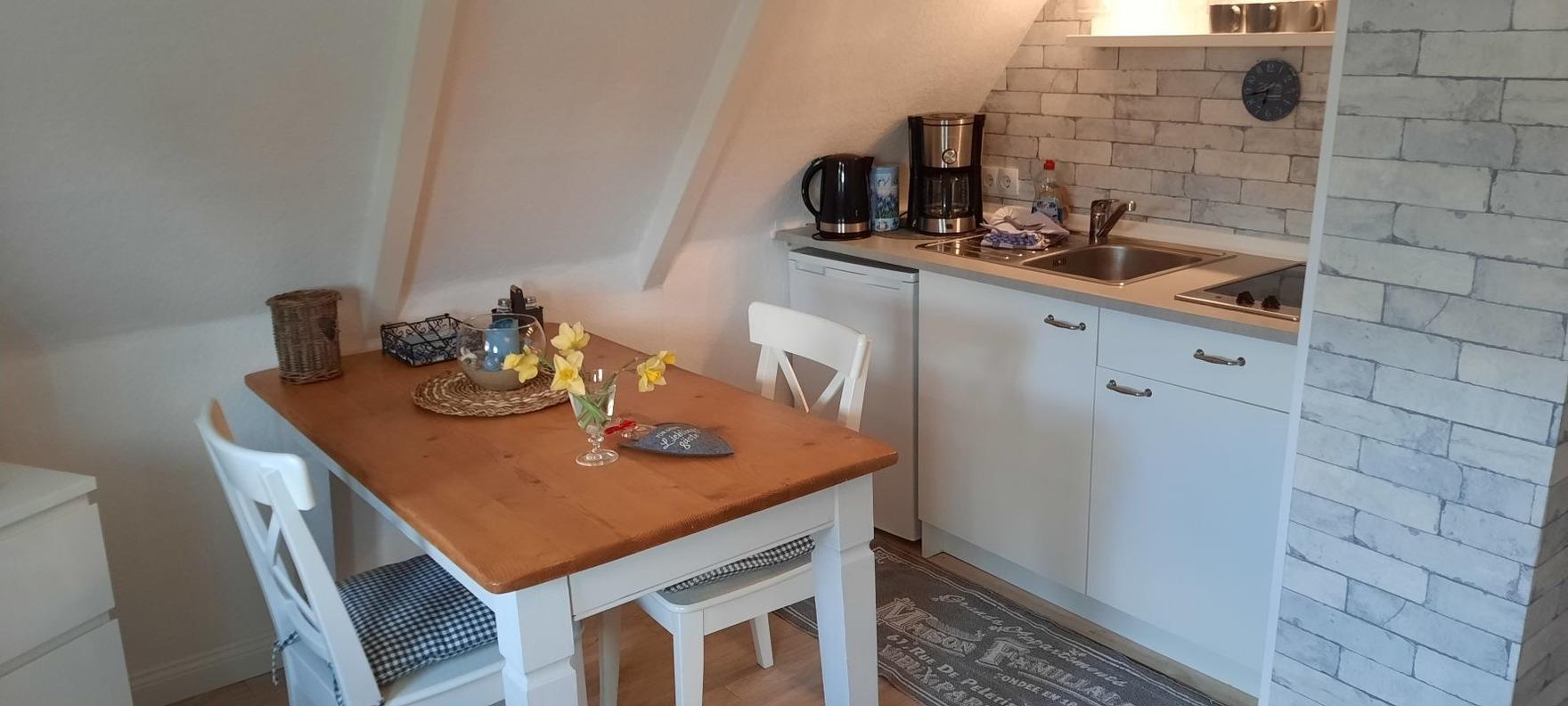 Kleine gemütliche Wohnung im 1. OG, ruhig gelegen im Herzen von Scharbeutz. Einfache Ausstattung mit der Möglichkeit vor der Haustür zu frühstücken.