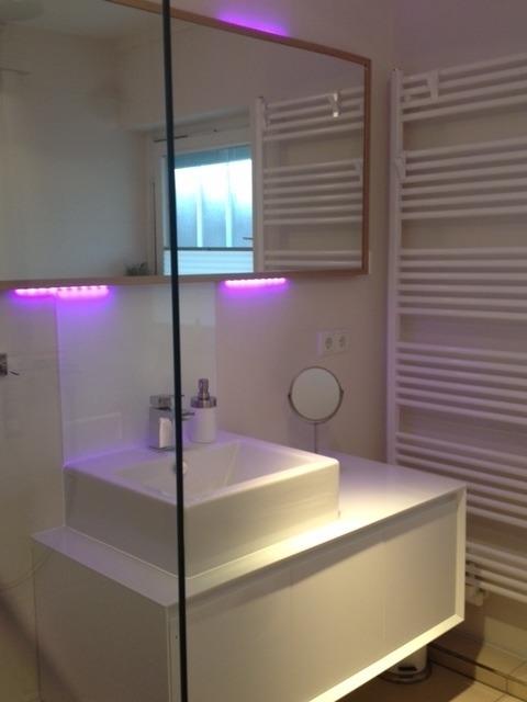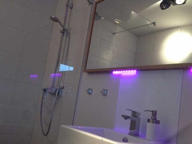 Im hellen Wohlfühl-Duschbad mit Wellnessbeleuchtung, bodenebener Walk-In-Dusche & Rainshower sowie einem Handtuchheizkörper startet ein entspannter Urlaubstag! Das Badezimmer ist mit edlem Feinsteinzeug ausgestattet.