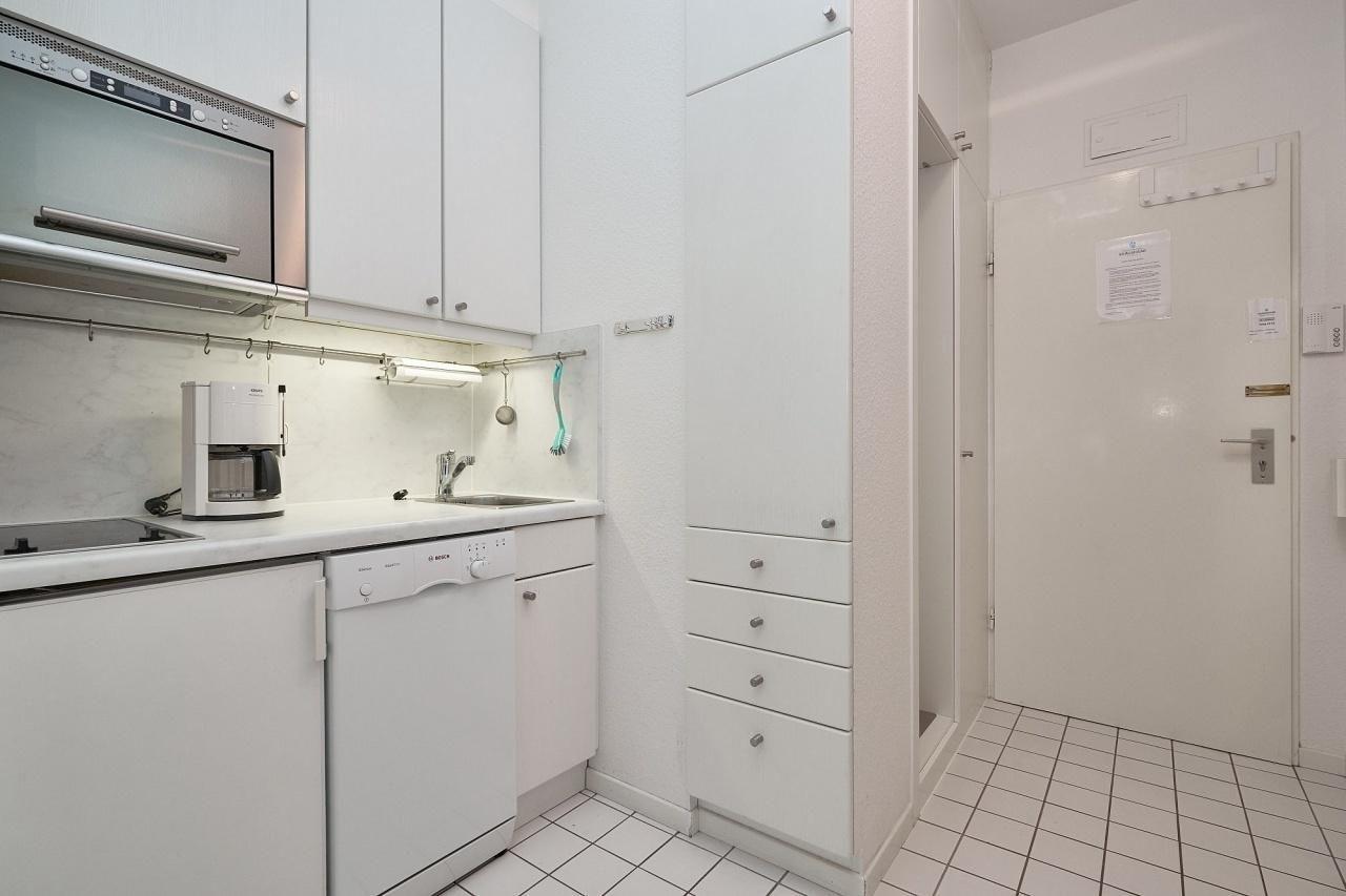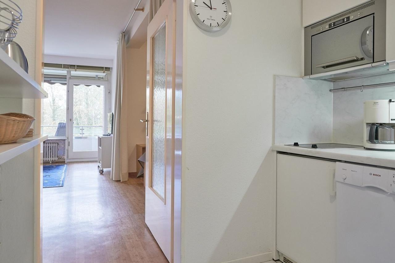 Mit dem Aufzug gelangen Sie ganz bequem in die 2. Etage - nun sind Sie gleich da in Ihrem Feriendomizil. Über einen kleinen Flur betreten Sie die Wohnung. Das moderne Duschbad mit WC liegt gleich neben dem Flur. Der Wohn- und Schlafbereich ist eingerichtet mit einer gemütlichen Schlafnische mit Doppelbett (2x80x200cm) und einen Essbereich. Das moderne 2-er Sofa bietet tagsüber Raum zum Relaxen. Entspannen Sie auf dem Balkon mit Blick ins Grüne, auf dem Sie im Sommer ein leckeres Abendessen genießen können. Die kleine Küche mit Ihrer guten Ausstattung lädt Sie ein kleinere Gerichte zuzubereiten. Sollten Sie zwischendurch etwas reinigen müssen, kein Problem! Eine gemeinschaftlich genutzte Waschmaschine sowie ein Trockner stehen Ihnen im Keller des Hauses gegen Gebühr zur Verfügung.