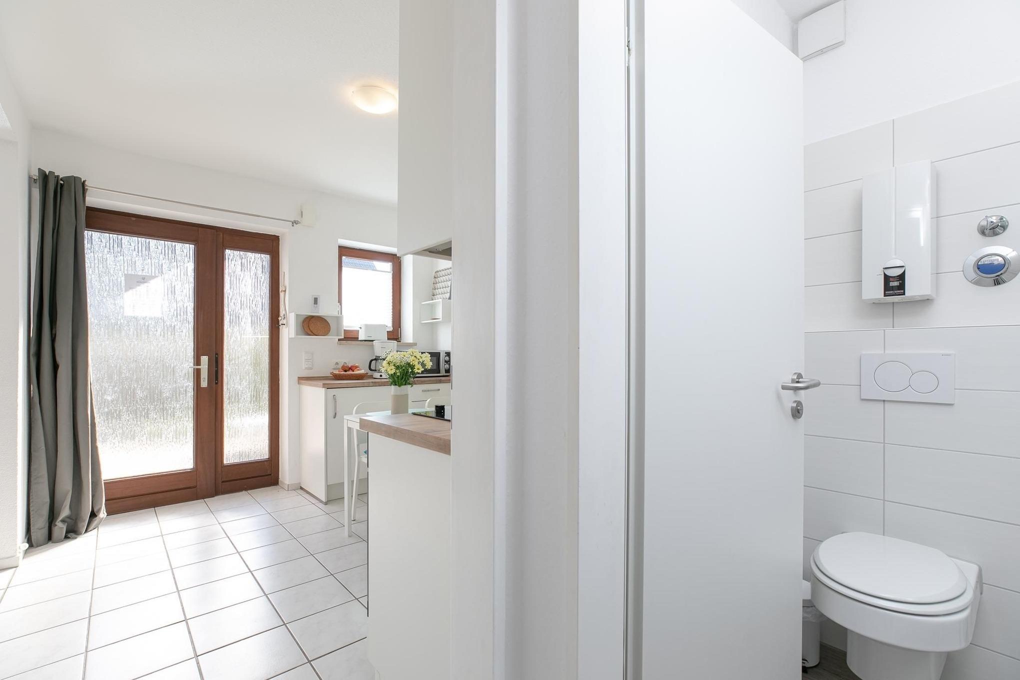 Es stehen Ihnen 1 kombinierter Wohn-Schlafraum mit einer Leder-Schlafcouch (Liegefläche 140x200 cm mit Lattenrost), ein separates Schlafzimmer mit einem Doppelbett (180x200 cm) sowie eine neue moderne Küche mit Geschirrspüler zur Verfügung. Das moderne Duschbad verfügt über eine flache Duschwanne mit Echtglas-Duschabtrennung, Handtuchheizkörper, Stauraum. Die schöne Terrasse mit Gartenmöbeln lädt zum Frühstück in der Morgensonne ein. WLAN steht Ihnen selbstverständlich kostenlos zur Verfügung.