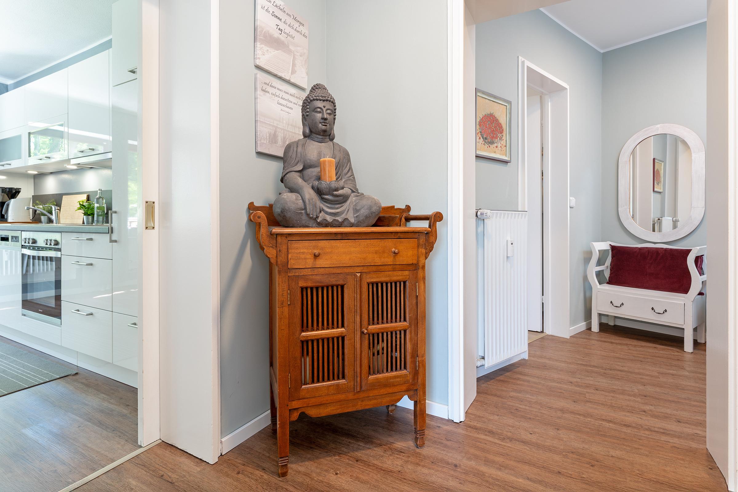 Die Schlüsselübergabe erfolgt über einen Tresor am Kraushaar Ferienwohnungen Servicebüro in der Seestraße 47, 23683 Scharbeutz.