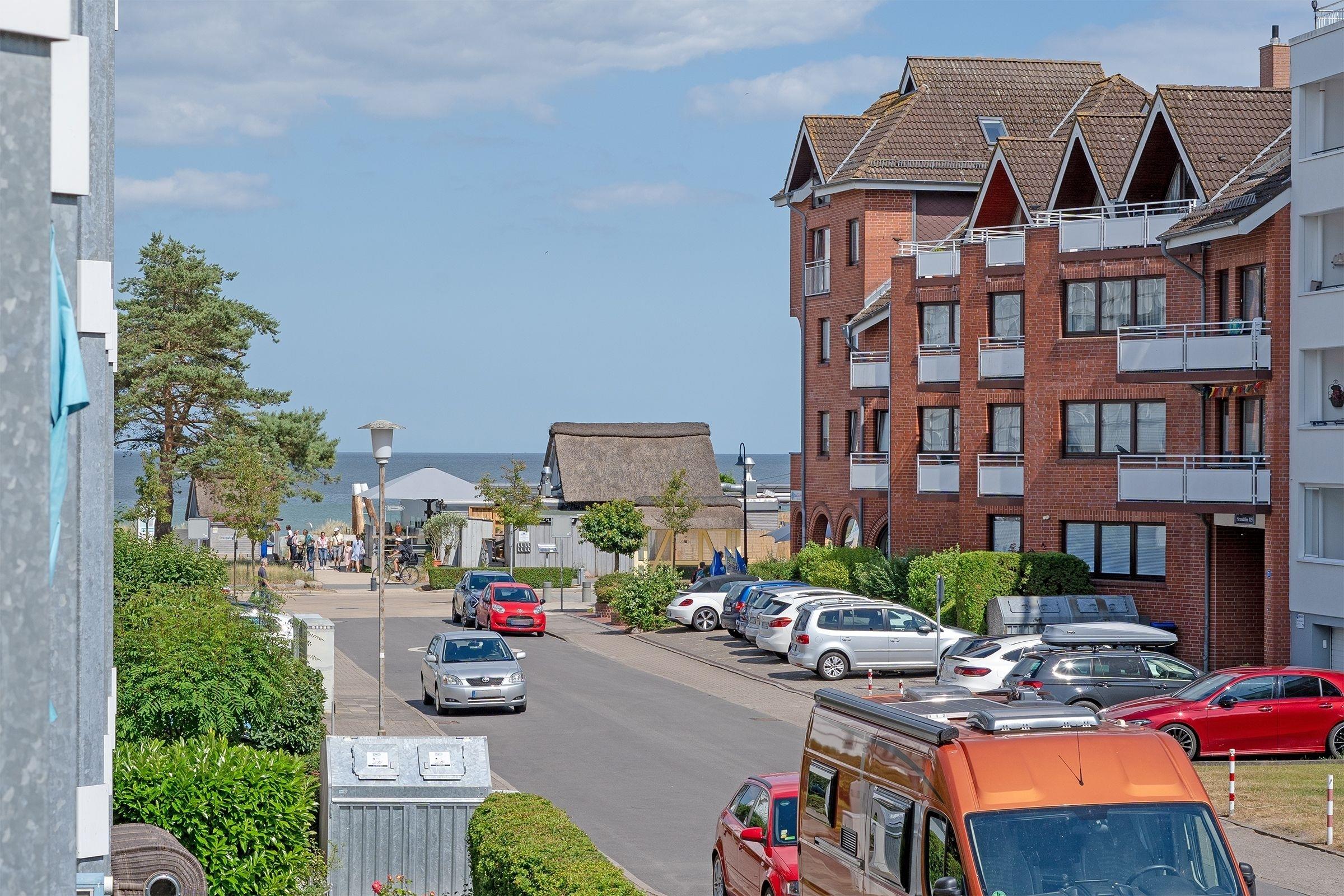 Moderne Ferienwohnung mit Balkon und seitlichem Ostseeblick in Scharbeutz, nur wenige Schritte vom Strand entfernt.