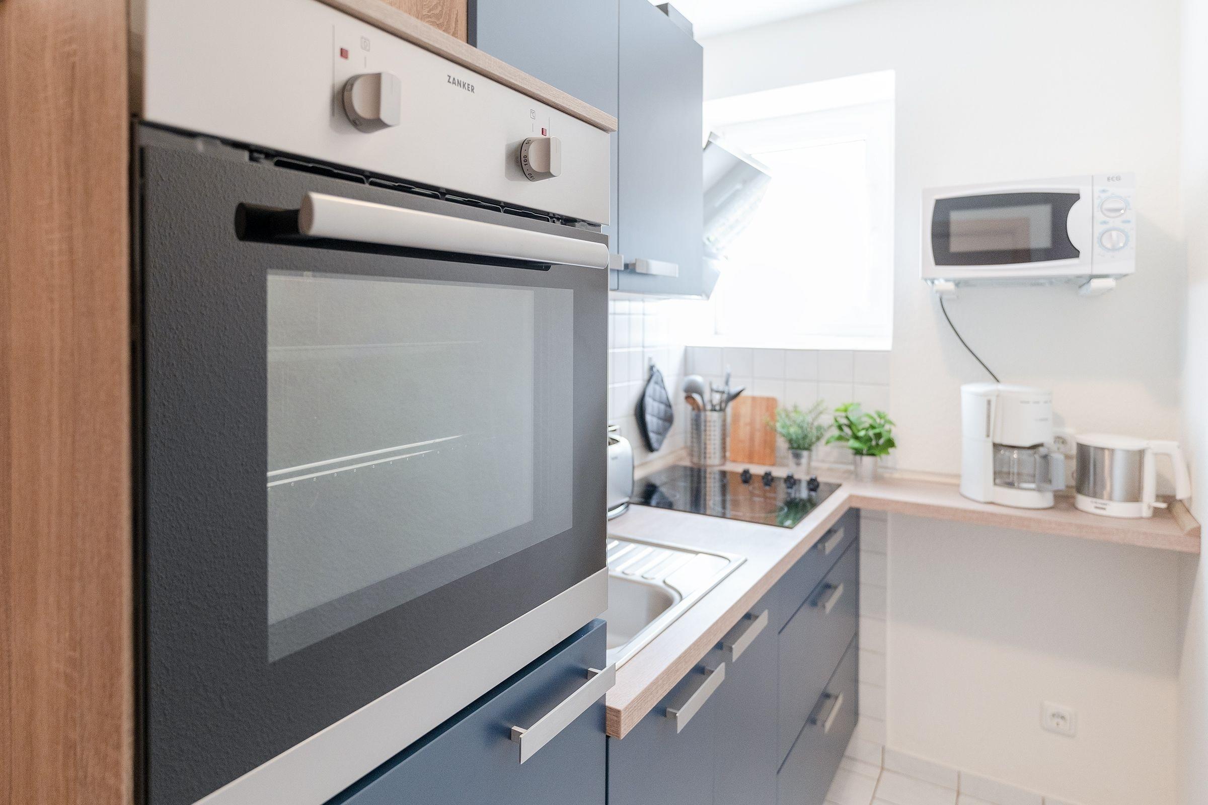 Das 1-Zimmer Appartement ist ausgestattet mit einem Doppelbett (140x200 cm) sowie einem gemütlichen Esstisch für 2 Personen. Die große Sofalandschaft und der Flachbildfernseher laden zu kuscheligen Abenden ein. Die separate Küche mit Fenster, Backofen, Gefrierfach, Herd, Kaffeemaschine, Mikrowelle, Toaster und Wasserkocher ist voll ausgestattet und lädt dazu ein leckere Gerichte zu kreieren. Von hier gelangen Sie in das tageslicht-Bad mit Dusche und WC.