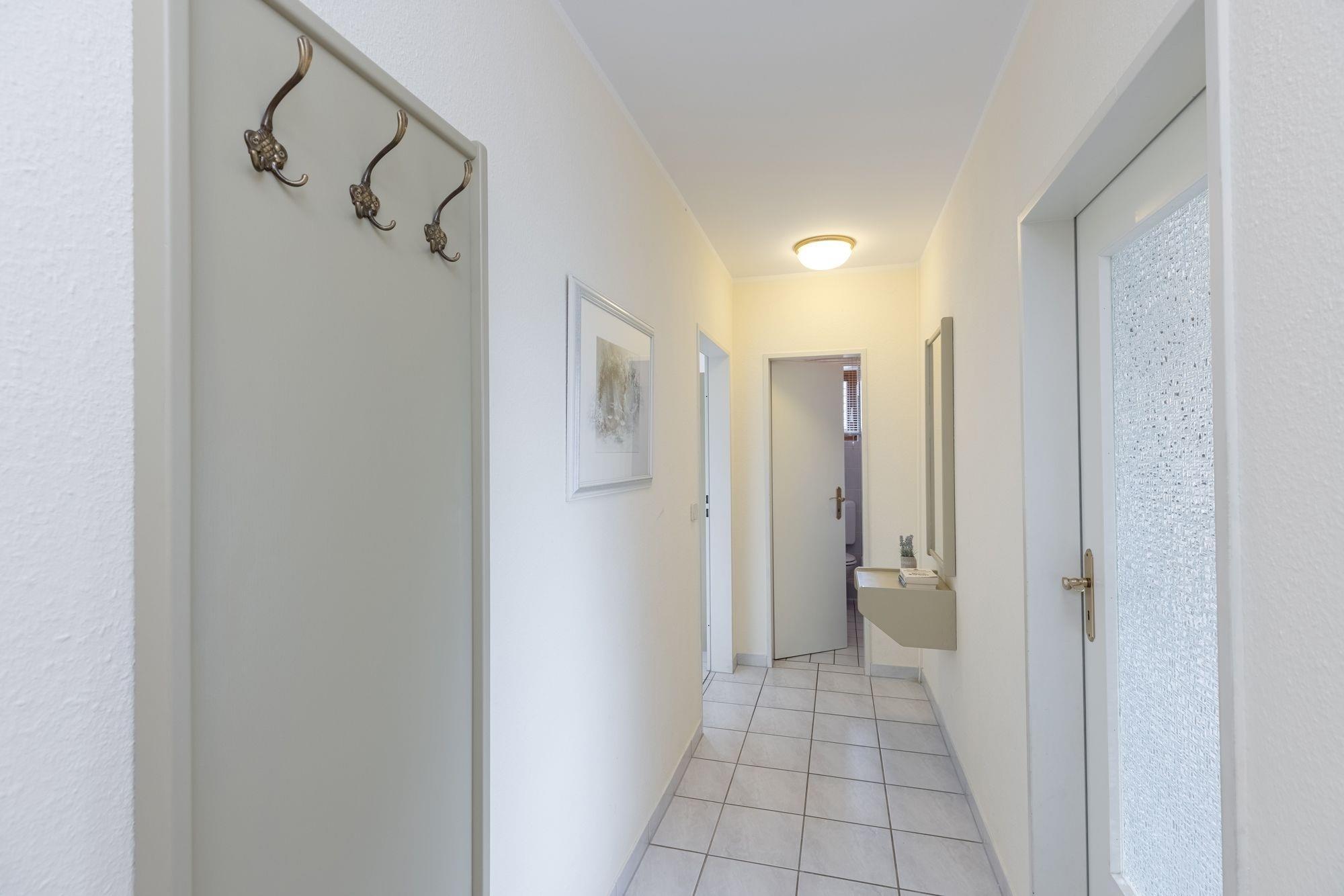 Tür auf - ab jetzt ist Urlaub – ein Flur mit Garderobe empfängt Sie. Koffer abgestellt, Jacken aufgehängt und erst einmal ankommen.